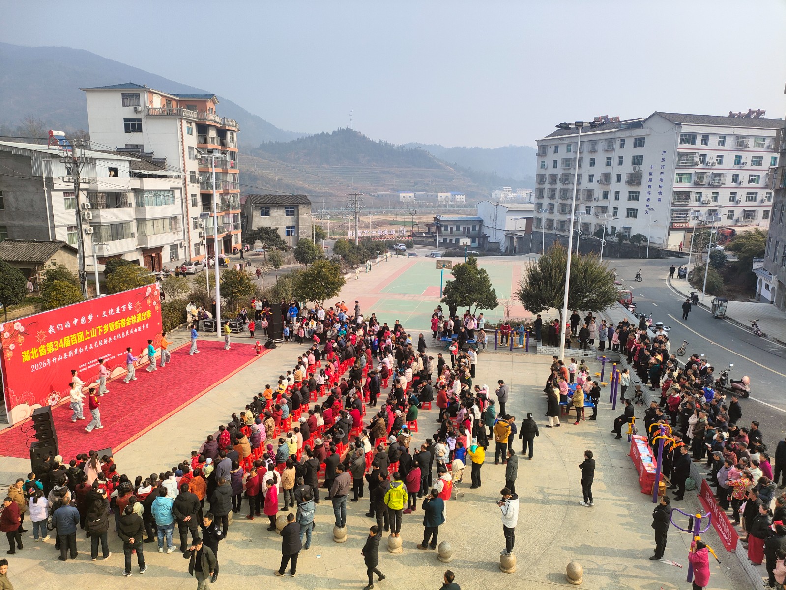 今日竹山网消息 2月6日,湖北省第三十四届“百团上山下乡暨新春金秋演出季”活动在秦古镇精彩上演。此次活动由县委宣传部联合县高腔剧团及众多文化志愿者,共同组成一支“红色文艺轻骑兵”,以“我们的中国梦·文化进万家”为主题,深入基层一线,将一台集戏曲、歌舞、曲艺于一体的综合性文艺节目直接送到了乡村社区,让广大群众在家门口享受到了一场高质量的文化盛宴。