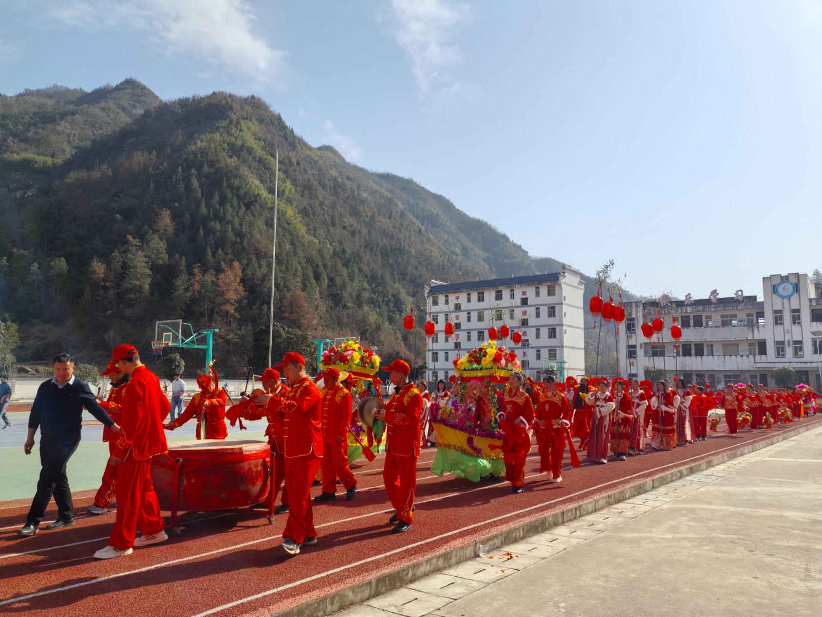 今日竹山网消息 2月12日,楼台乡三台九年一贯制学校操场锣鼓喧天、人声鼎沸,2026年春节民俗展演活动在此进行彩排。来自三台、塔院、楼台3个村的群众文艺团队为即将到来的新春佳节“亮绝活”,提前点燃了浓浓年味。