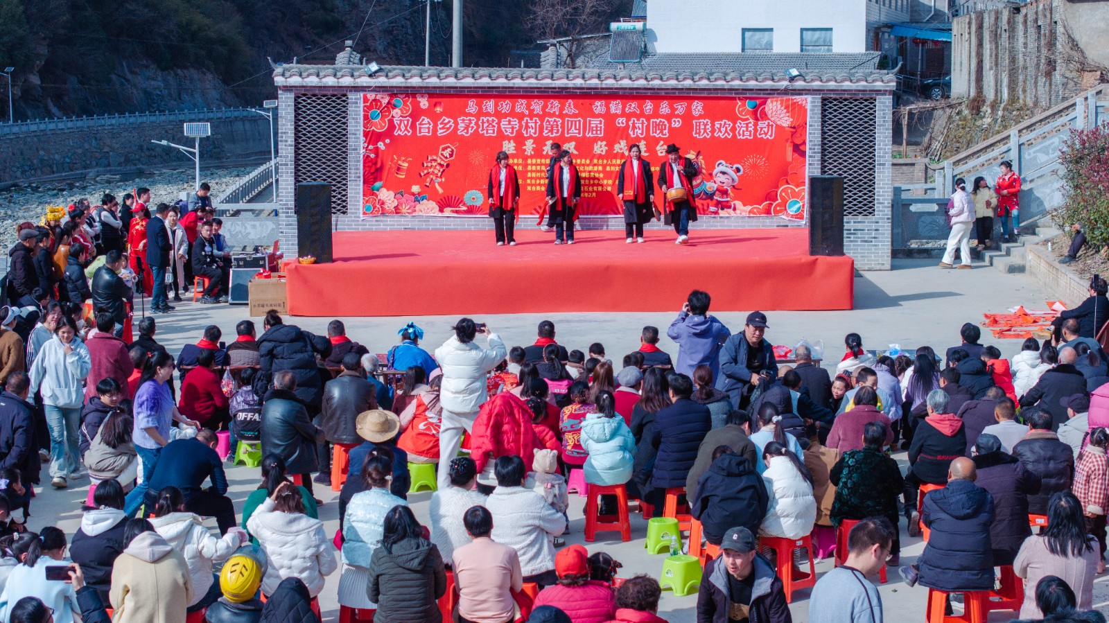 今日竹山网消息 2月12日,双台乡茅塔寺村河堤小广场锣鼓声声、年味浓郁,该村第四届“村晚”热闹启幕。活动由村民自编自导自演,涵盖舞蹈、独唱、快板、小品等形式,《马年大吉》《好运来来来》等节目活力满满,独唱《吉祥中国年》暖意融融,快板宣讲、小品《交医保》接地气、传政策。互动环节,村民踊跃参与,在欢声笑语中普及安全知识,既丰富了群众新春精神文化生活,更凝聚起乡村振兴正能量,让新春年味里满是民生温情与奋进力量。(章伟 陈三贵)