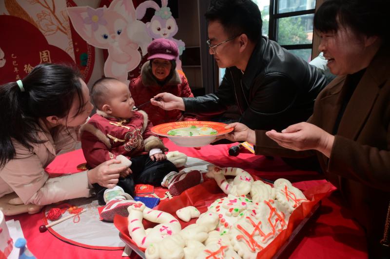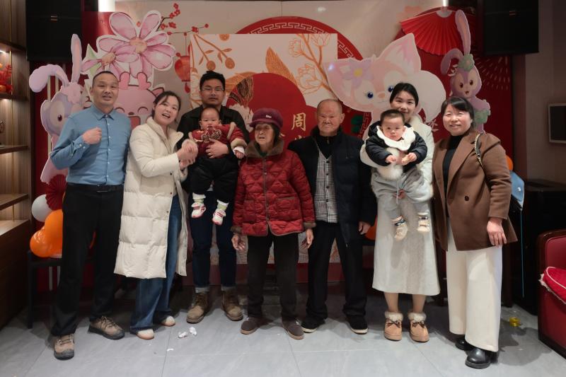“在我们储家院,就剩我们老两口年纪最大了,我88岁,老伴86岁,要不是我们大兴孝顺,可能早就拱到土巴里了,咋能看得到重孙抓周。”徐大兴的老父亲徐根贵沉浸在满满的幸福中,激动得热泪盈眶,那泪水中饱含着传承孝道文化得到的敬老爱老的丰厚回报。(石濡华)