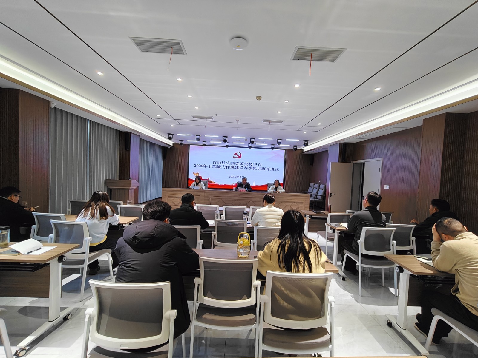 今日竹山网消息 2月24日,县公共资源交易中心举行2026年干部能力作风建设春季轮训班开班式,引导全体干部职工节后迅速收心归位、凝心聚力,以昂扬状态开启新一年工作。