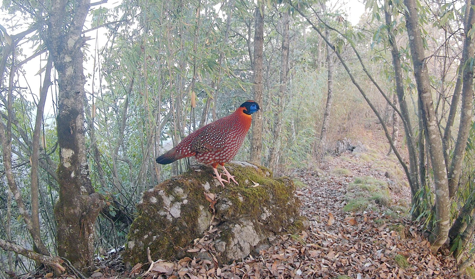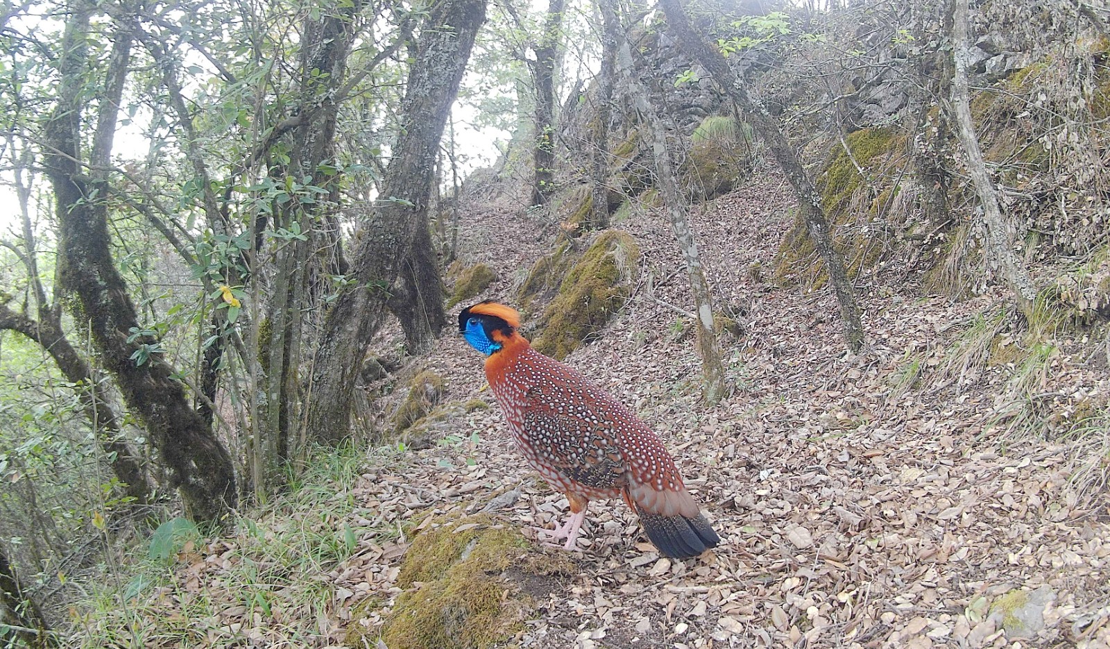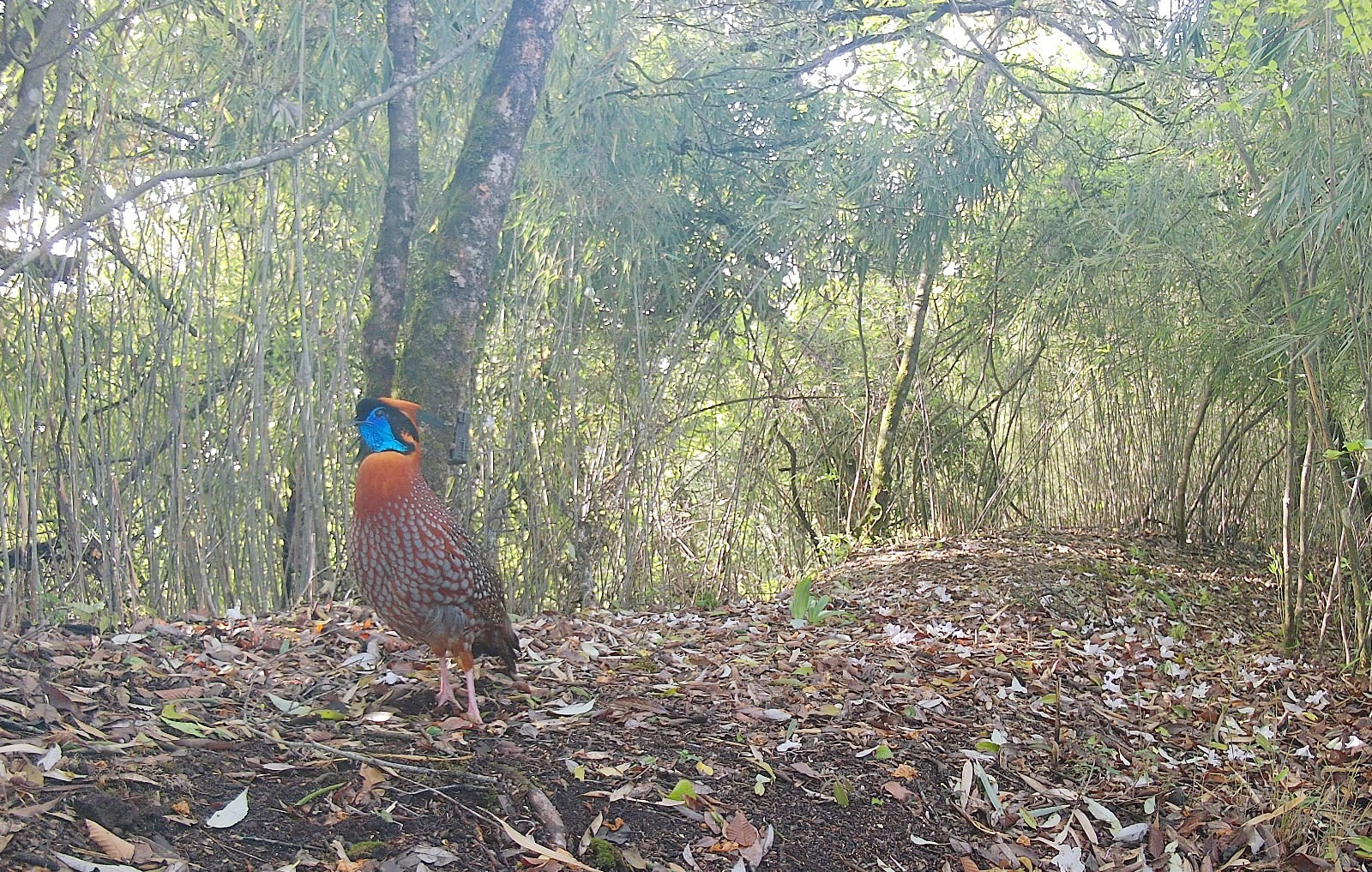 据了解,红腹角雉喜欢居住在有长流水的沟谷、山涧及较潮湿的悬崖下的原始森林,主要以乔木、灌木、竹子、草本植物、蕨类植物的嫩叶、幼芽、嫩枝、果实和种子为食。