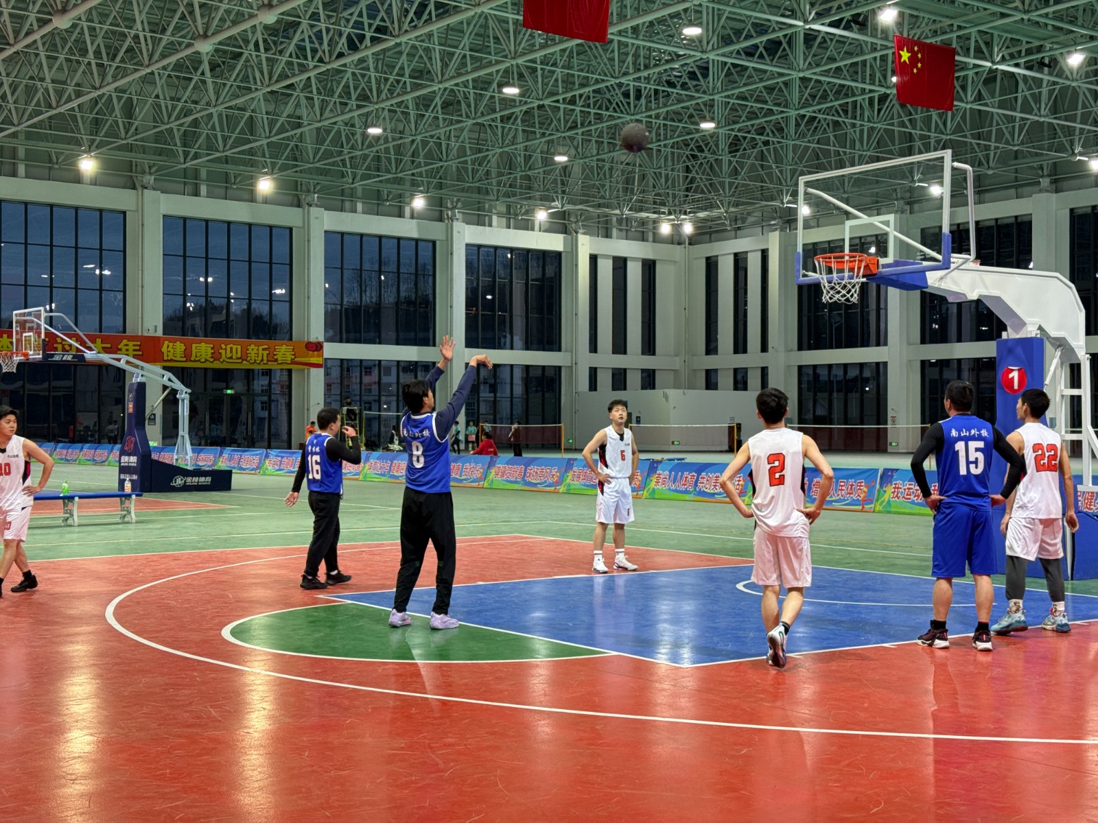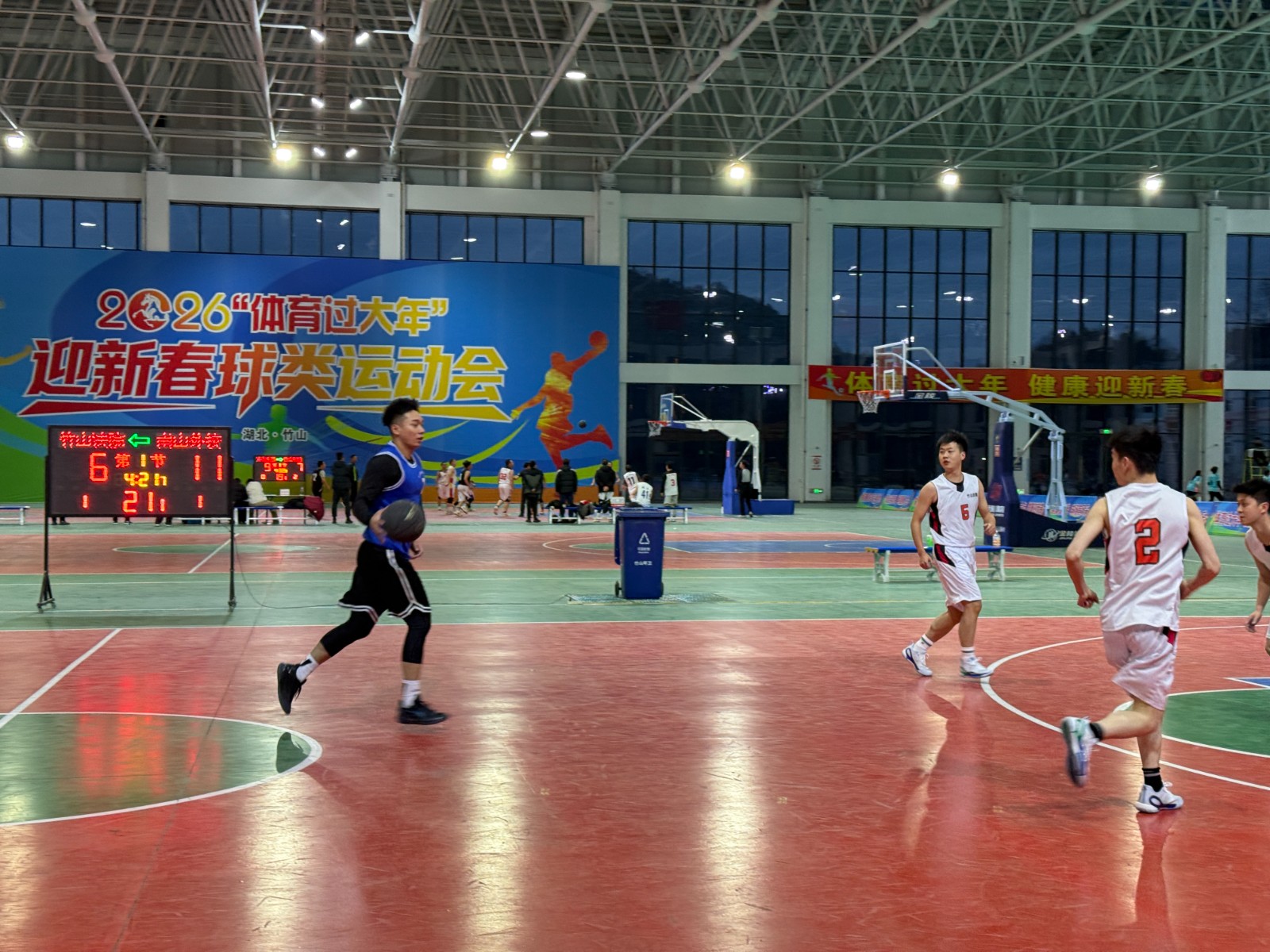 今日竹山网消息 2月28日,2026年竹山县“体育过大年”“迎新春”球类运动会火热进行中,南山五福堂外国语学校积极组队参赛,亮相全县篮球赛事,以昂扬姿态展现校园体育风采,为新春增添运动活力。