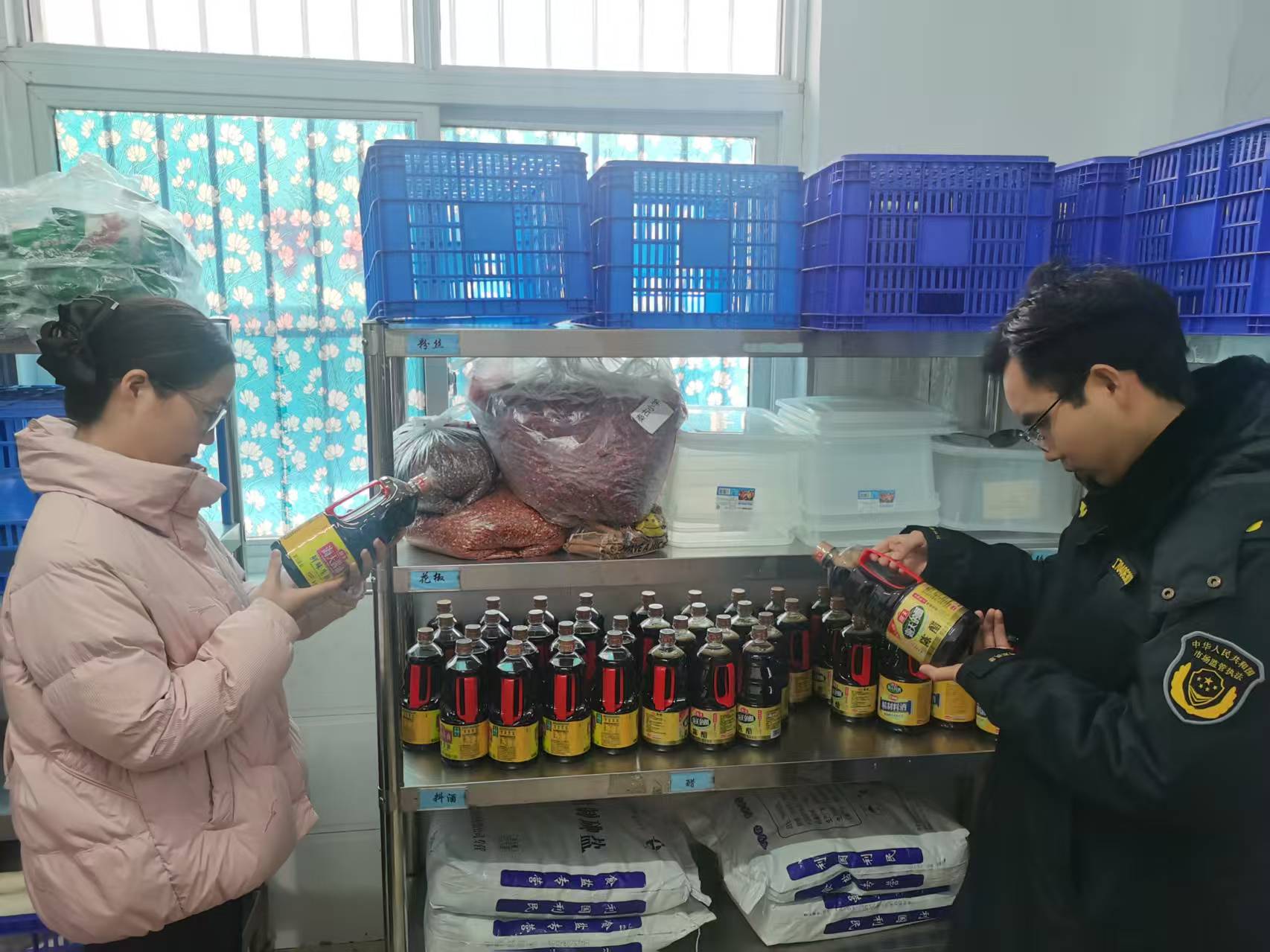 检查过程中,市场监管所执法人员聚焦校园食堂全流程管控,开展清单化食品安全核查。重点查验校长(园长)负责制、食品安全总监与安全员履职、日管控周排查月调度制度落实情况;逐一核对米、面、油、肉、蛋、奶等大宗食材索证索票、进货查验、台账记录,严查过期、变质、三无及感官异常原料,严把采购溯源关;深入后厨检查操作分区、生熟分开、烧熟煮透、餐具清洗消毒、三防设施(防鼠、防蝇、防尘)及设备维保情况,规范加工操作与环境卫生;同时核查从业人员健康证明、晨检制度与个人卫生,压实食堂主体责任,杜绝食品安全风险。