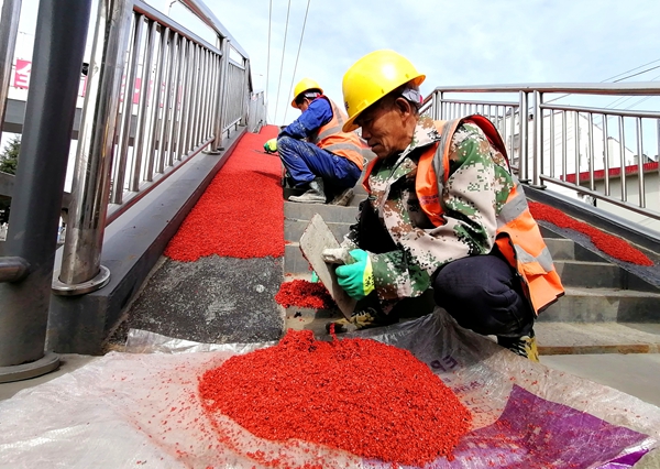 “这种EPDM材料是我们经过多方比选后确定的,核心是从保障学生通勤安全的角度出发。”现场一位负责技术指导的人员向笔者介绍,与传统的混凝土或瓷砖桥面相比,这种材料具有良好的弹性缓冲性能和卓越的防滑性能。现在铺上这种材料,即使遇到雨雪天气,桥面也不易积水,防滑系数大幅提高;万一有孩子不小心摔倒,这种柔软的质地也能起到缓冲作用,有效减少磕碰伤害。
