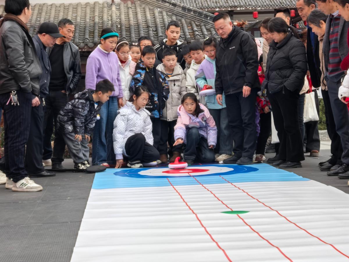 气排球赛场上,队友们全力配合,精彩瞬间不断上演;投壶区域内,小朋友们手持箭矢轻轻一抛,既有传统民俗的雅致,又有竞技比拼的乐趣;滚轮胎赛道上,选手们手扶轮胎、弯腰俯身、稳步前行;赶马入厩项目的参与者手持道具,小心翼翼地“驱赶”“马匹”向指定区域前进。扔沙包、趣味投篮、旱地冰壶等项目同样人气爆棚,市民们在挥洒汗水中收获快乐,在趣味竞技中感受运动魅力。