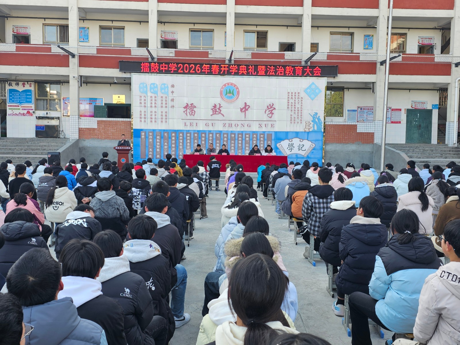 今日竹山网消息 春风启新篇, 逐梦正当时。3月4日,擂鼓中学以“骏马追风春启序 少年立志梦扬帆”为主题,举行2025—2026学年度第二学期开学典礼,全校师生齐聚一堂,以昂扬之姿迎接新学期的到来。