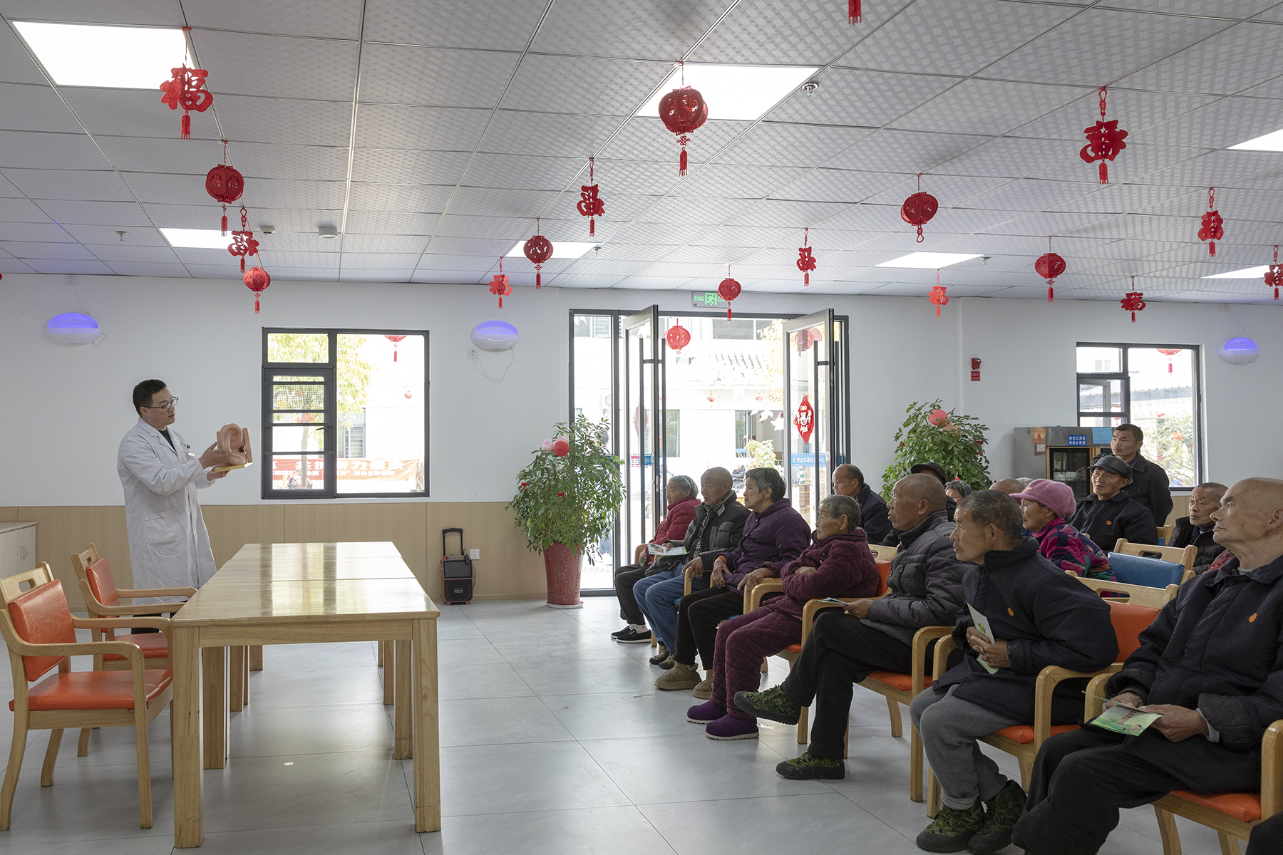 义诊结束后,耳鼻喉科专业人员借助耳部解剖模型,为老人及照护人员开展了一场“看得见、摸得着”的科普讲座。医务人员通过模型直观展示耳部构造,现场示范耳部保健操,将爱耳护耳专业知识转化为通俗易懂的实操方法。讲座重点讲解了老年性耳聋的预防与干预策略,帮助照护人员提升识别听力下降、耳鸣等问题的能力,做到早发现、早提醒、早干预。