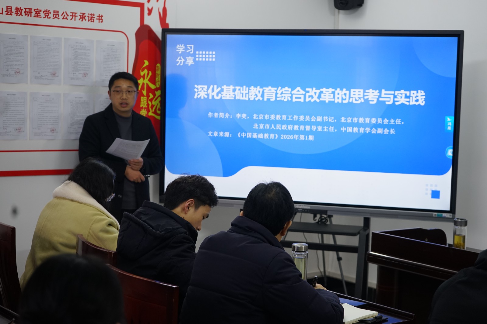 活动聚焦教育改革发展前沿,系统学习了教育部关于学生身心健康工作的新部署、七部门加强中小学科技教育的意见、北京市深化基础教育综合改革的“三大属性”实践、杭州市推进国家德育课程校本化实施的区域经验。通过政策解读与案例剖析,教研员们深化了对“健康第一”育人理念、科技教育战略意义、教育综合改革系统性以及德育课程校本化路径的理解,为精准指导学校实践奠定了理论基础。