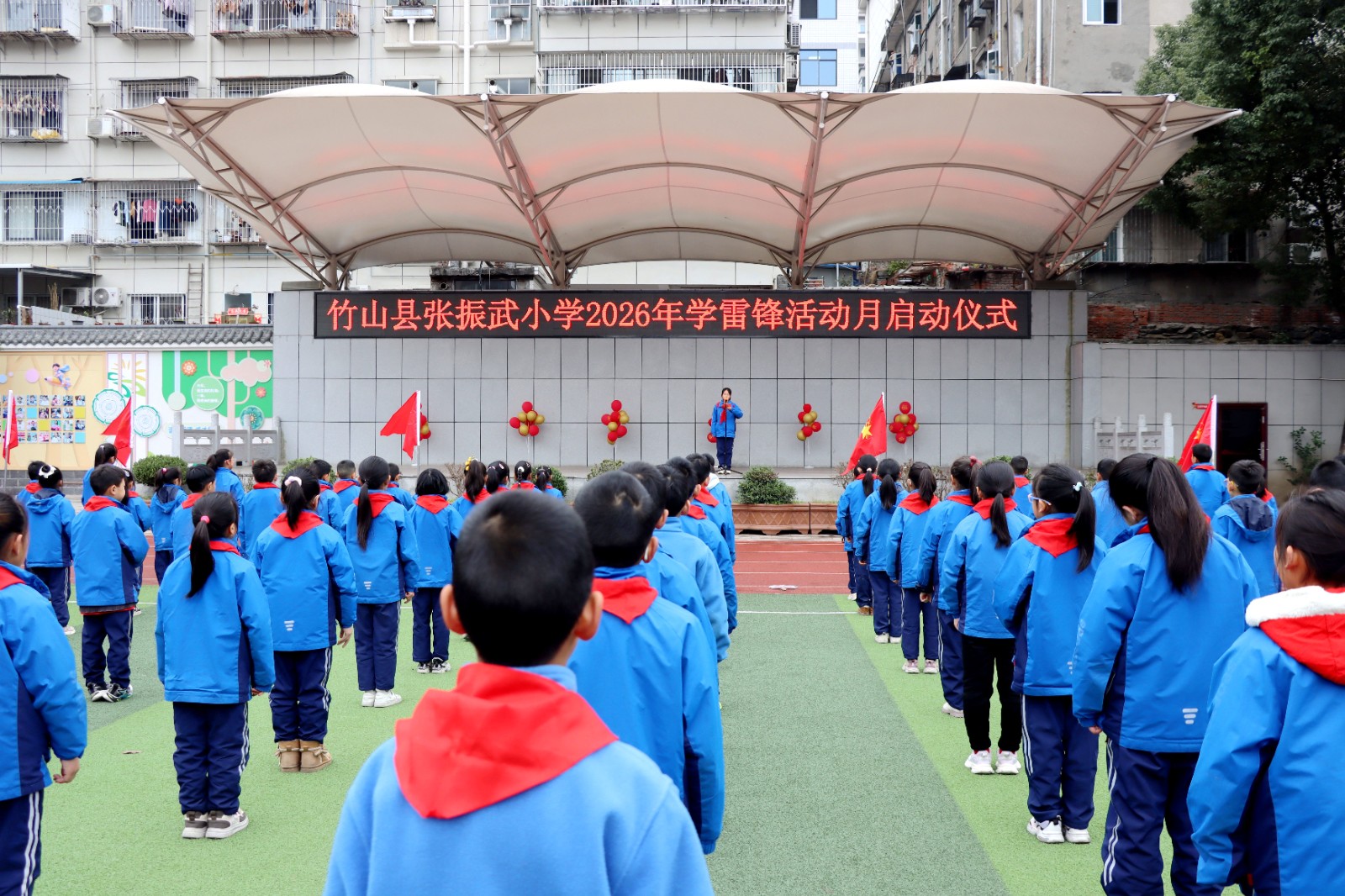 今日竹山网消息 3月5日上午,张振武小学举行2026年“学雷锋”活动月启动仪式,并开展主题实践活动,将志愿服务与思政教育有机融合。