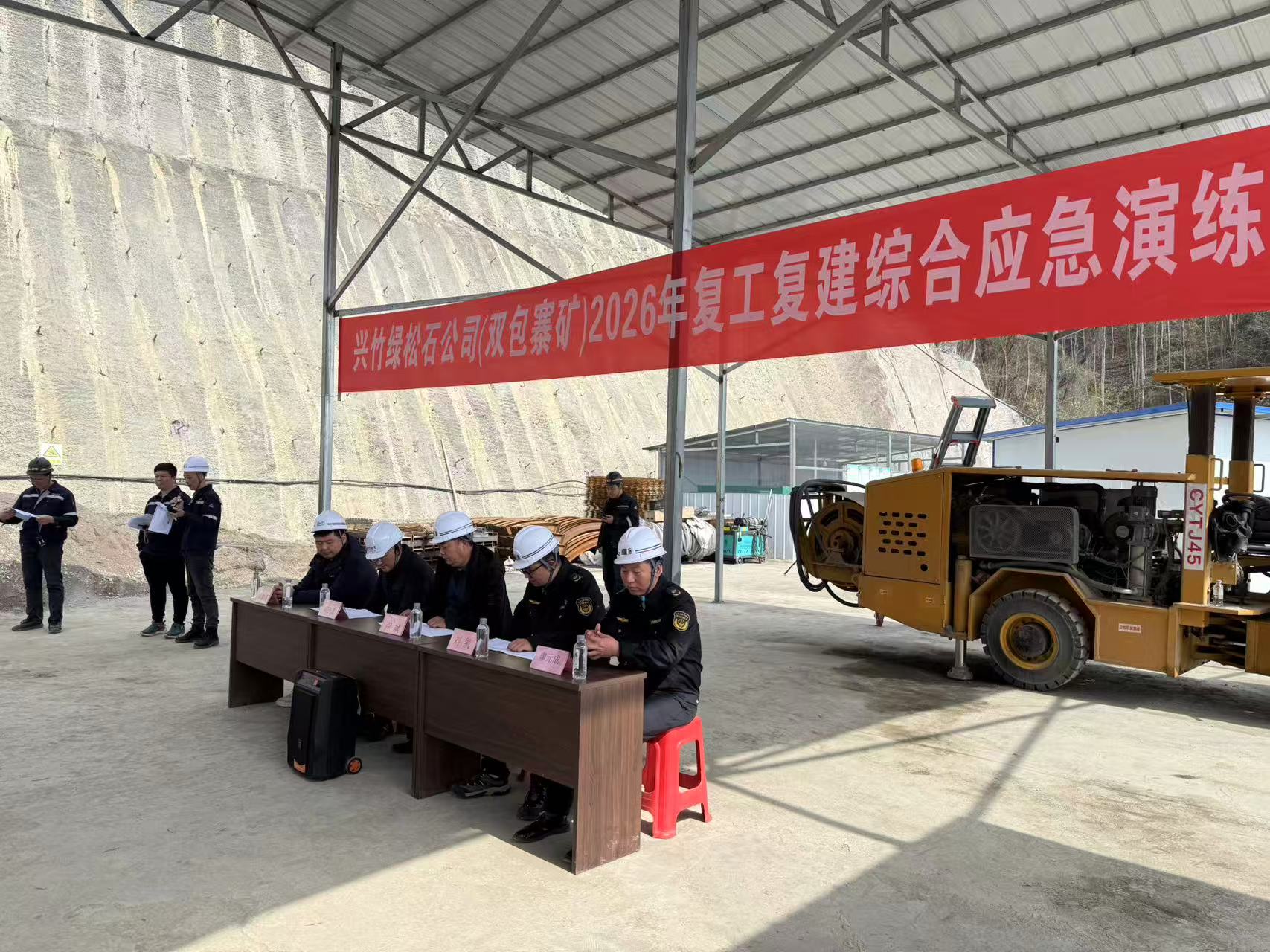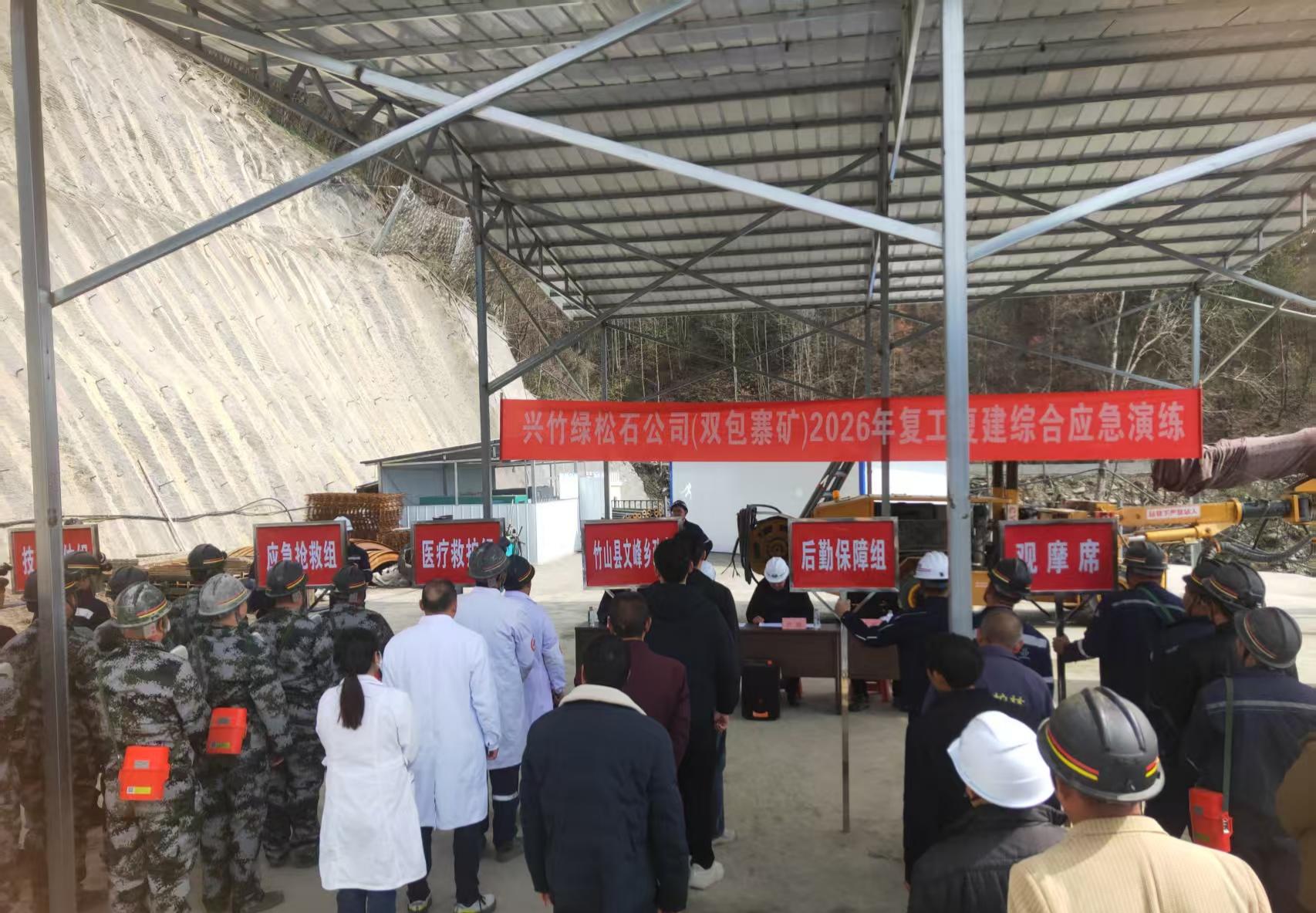 今日竹山网消息 为切实筑牢矿山安全生产防线,保障复工复建工作安全有序推进,3月5日,兴竹国投集团在文峰双包寨绿松石矿山组织开展2026年度复工复建综合应急演练。