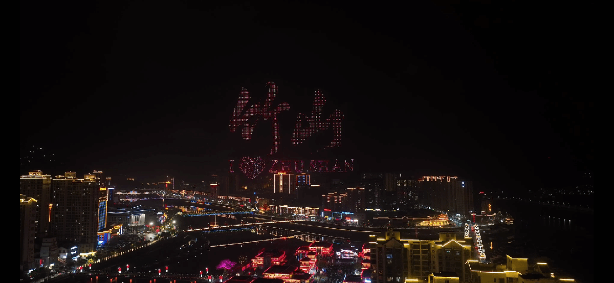 无人机光影秀引爆夜间消费。桃花源街区作为新春热门打卡地,2000架无人机以3D光影秀璀璨点亮堵河夜空,吸引上万名市民及游客现场观看。