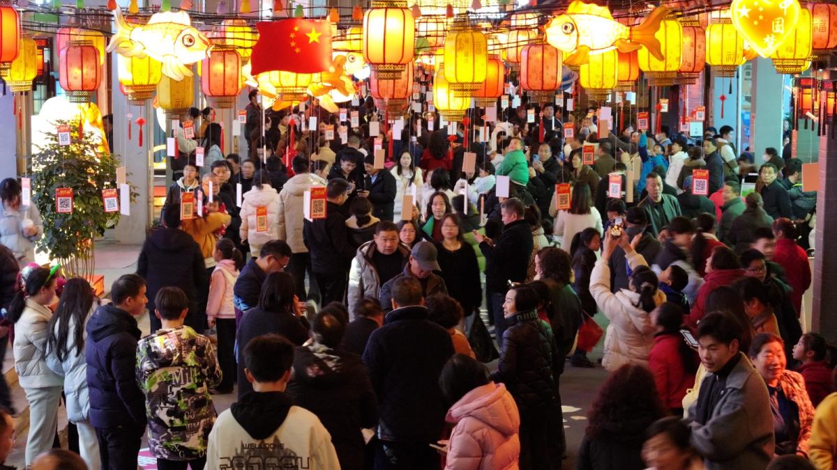 元宵节当晚,记者在桃花源街区女娲广场看到,上千名市民游客沉浸式参与灯谜竞猜、游艺互动、荧光夜跑、非遗展演等特色活动,在欢声笑语中共庆元宵佳节。这一热闹场景,也为春节至元宵期间持续火热的文体旅市场画上了圆满句号。