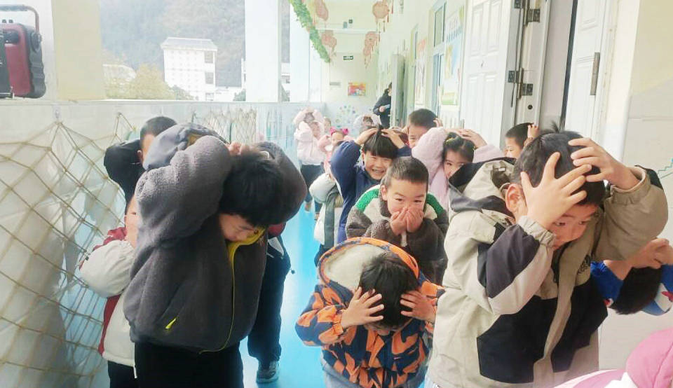 警铃响起,幼儿在教师引导下迅速进入应急状态,全体人员严格遵循“安全第一”原则,按预定疏散路线弯腰低姿、双手护头,快速有序撤离活动室。各楼梯口、拐角处的值守教师全程跟进疏导,实时关注幼儿行进状态,严防拥挤、踩踏风险。全体师幼均在规定时间内顺利撤离至操场安全区域,各班教师第一时间清点人数并向总指挥汇报,确保无一人遗漏。