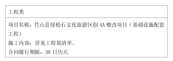 二、项目名称:竹山县绿松石文化旅游区创4A整改项目(基础设施配套工程)
