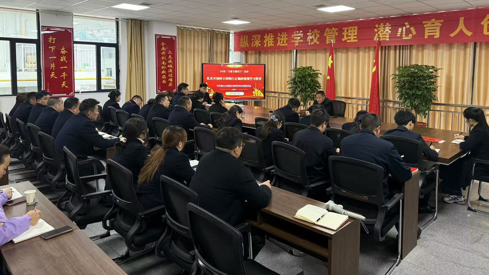 今日竹山网消息 3月23日,南山五福堂外国语学校组织全体党员及管理干部开展专题集中学习活动。
