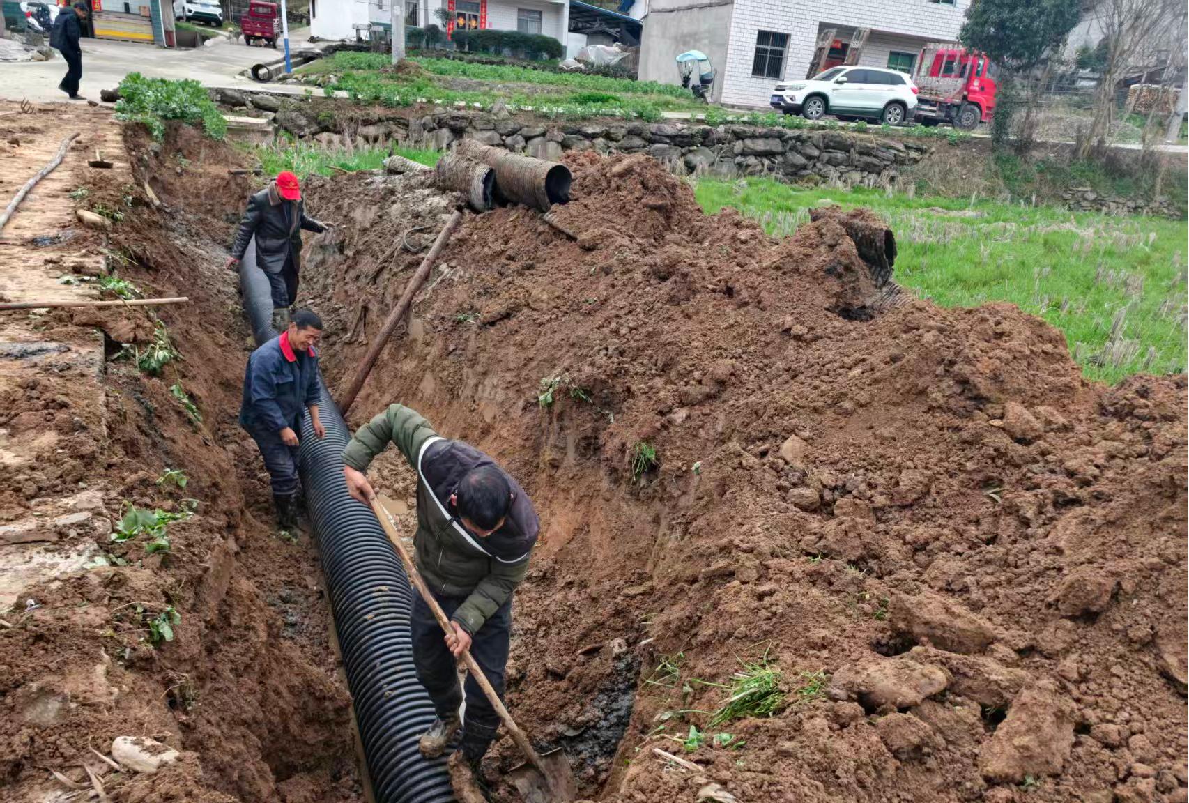 今日竹山网消息 近日,深河乡两道村对破损污水管网启动复修工作,党员干部带头攻坚、动员村民参与,干群携手破解管网老化、堵塞渗漏、污水乱排等顽疾,推动人居环境提质增效,把民生实事办到群众心坎上。