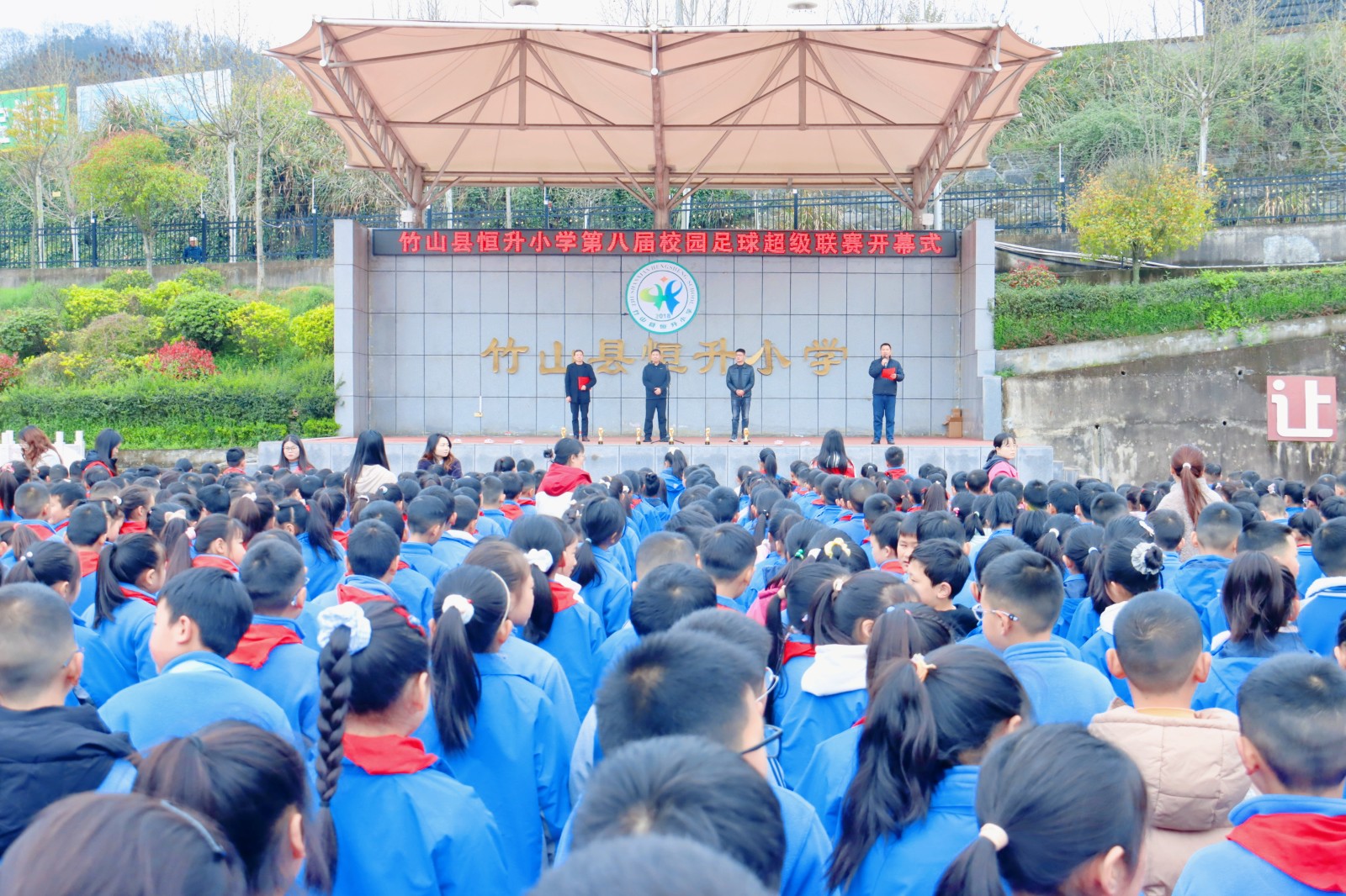 今日竹山网消息 3月25日,恒升小学第八届校园足球超级联赛启动,师生共启春季健康运动篇章。