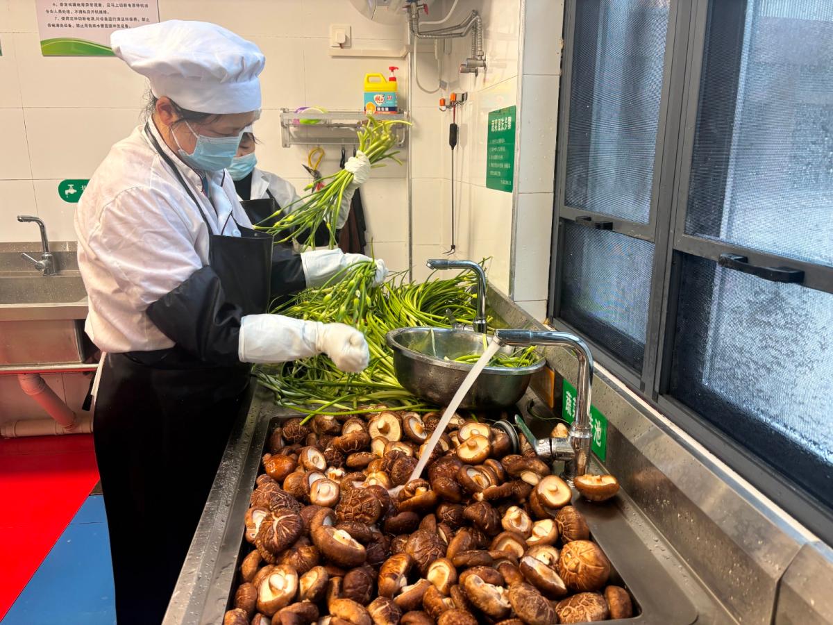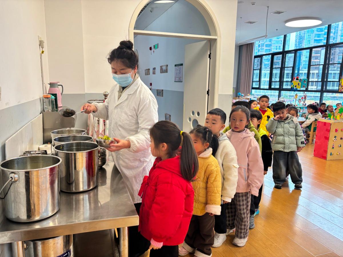 走进食堂操作间,环境干净整洁、功能分区清晰,食材清洗、切配、烹饪等各个环节规范有序。食品留样柜内,每日餐食按标准足量留样,并详细标注信息,实现每餐有据可查。同时,幼儿园依托“明厨亮灶”工程,将后厨操作全过程实时展示在电子屏幕上,让食品安全看得见、可监督。“在日常管理中,我们实行日管控、周排查、月调度,将责任落实到人。”刘玉华说。
