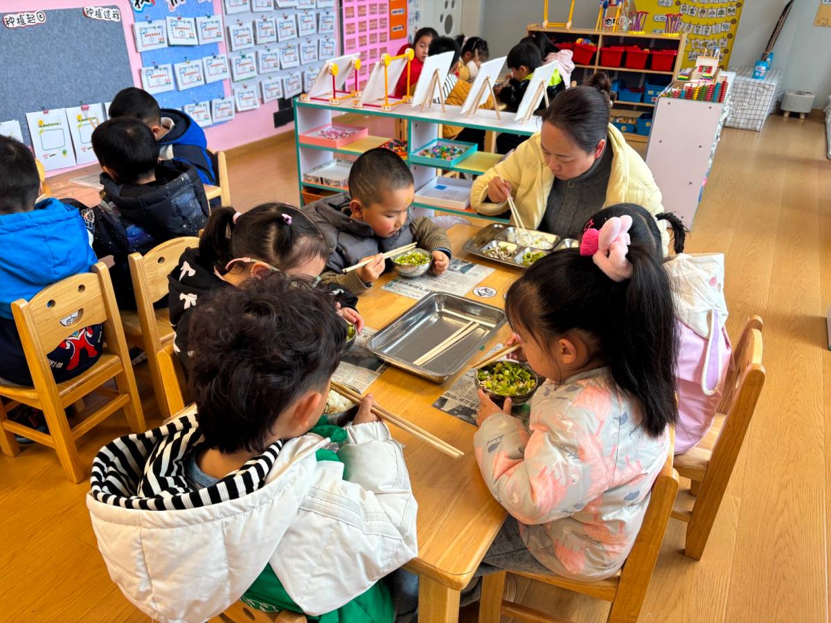 规范管理不止体现在食材与后厨,更延伸到用餐全过程。午餐时段,园领导、任课教师轮流走进班级,与孩子们同餐同食。陪餐时细心观察幼儿进食状态、饭菜适口性等,实时收集反馈。