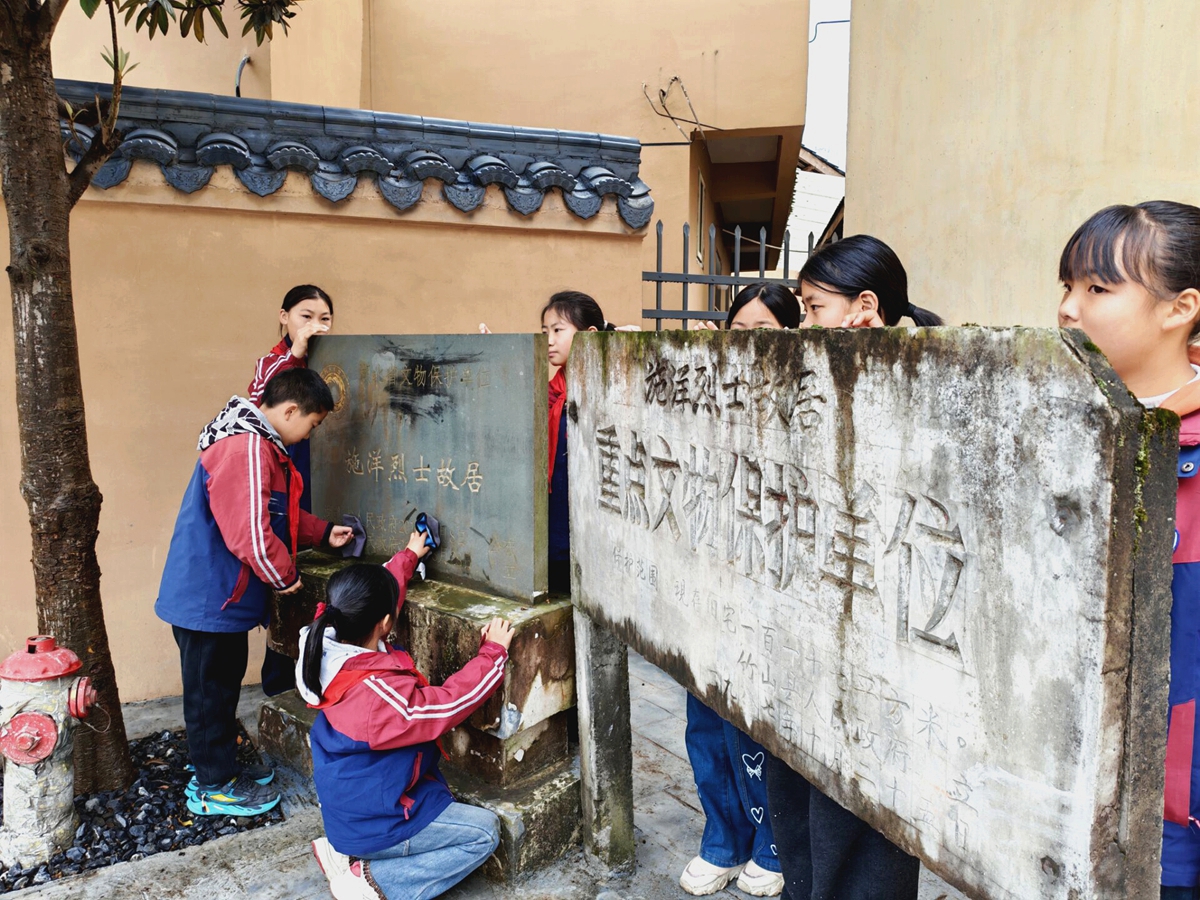 今日竹山网消息 3月30日,麻家渡镇小学组织少先队员前往施洋革命烈士故居纪念馆,开展了一堂别开生面的行走思政课“清明祭英烈 传承红色基因”祭扫活动。孩子们通过缅怀先烈事迹、重温革命历史、擦拭纪念碑等方式,深切缅怀革命先烈,寄托无限哀思,传承红色基因,厚植爱国情怀。