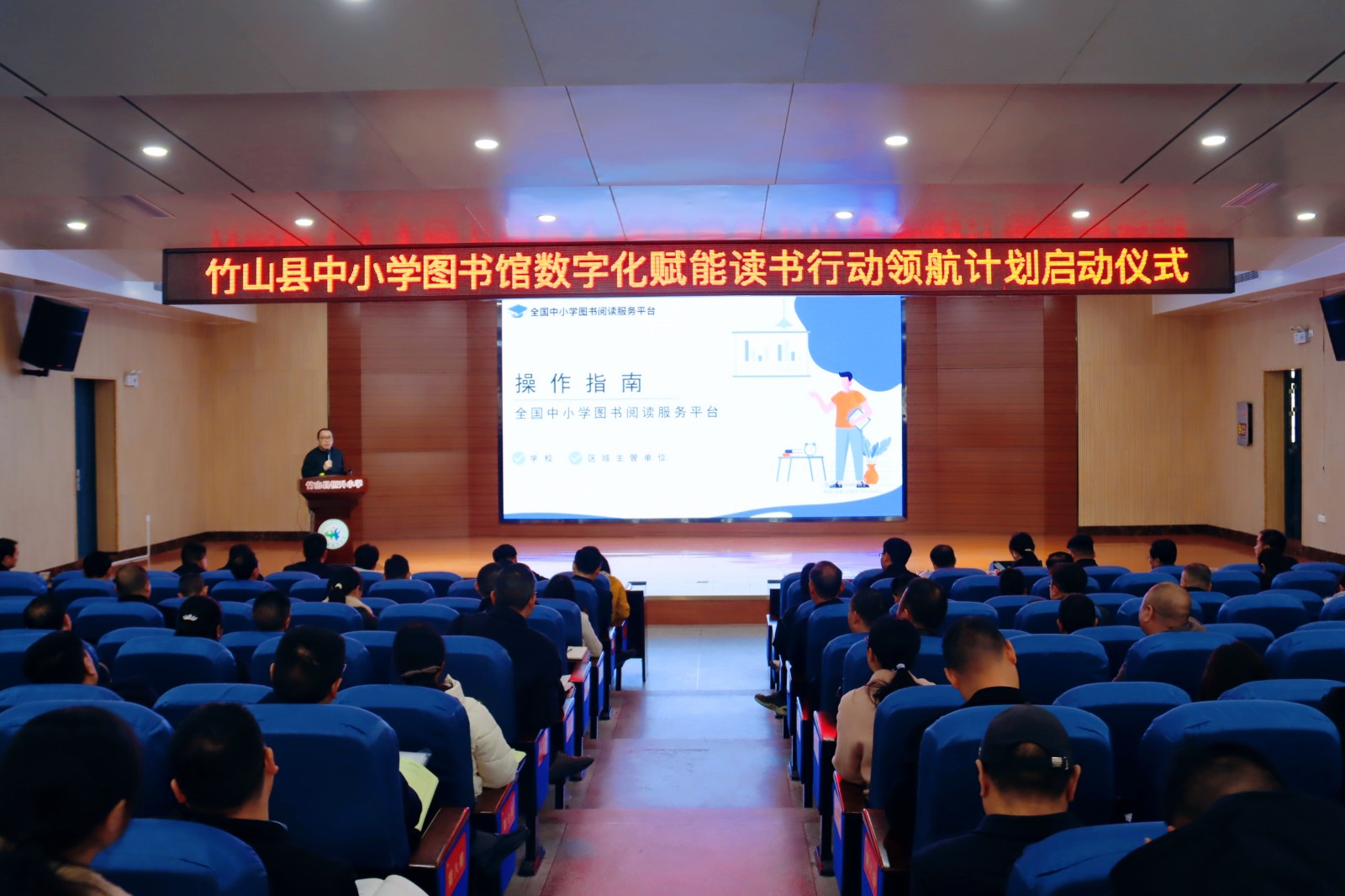 今日竹山网消息 3月27日,我县中小学图书馆数字化赋能读书行动领航计划启动仪式在恒升小学报告厅举行,县教育局领导、各学校校长及图书管理员等110余名代表齐聚,共启全县中小学图书馆数字化转型新征程。