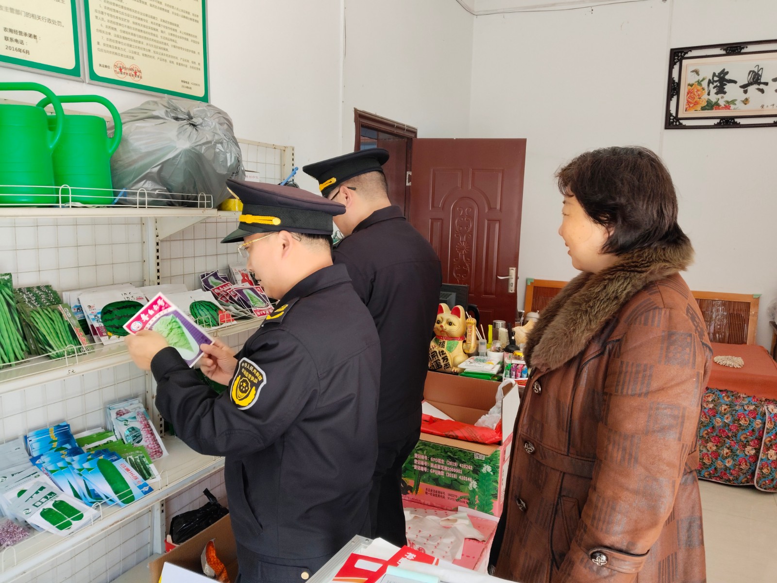 执法人员秉持“严排查、堵漏洞、强规范”的原则,逐户核查经营主体资质,仔细查验进货查验记录、购销票据、产品合格证、检验报告等台账资料,精准核对产品来源、生产日期、保质期、生产厂家、批准文号等核心信息,以“零容忍”态度严厉打击无照经营、销售假冒伪劣农资、虚假宣传、冒用他人厂名厂址等各类违法违规行为,坚决不让不合格农资产品流入田间地头。