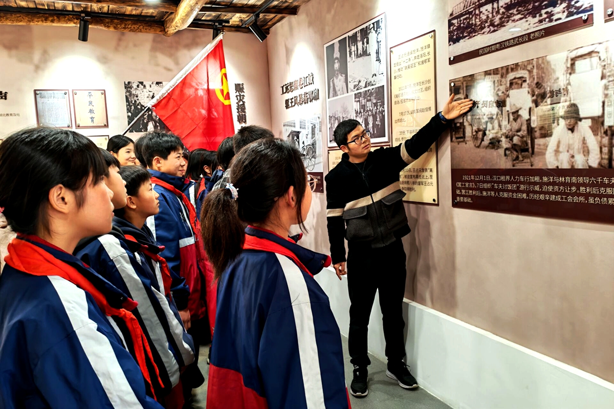 在麻家渡镇桂花树村的施洋烈士纪念馆内,青年团员们怀着崇高敬意瞻仰烈士故居,向烈士铜像敬献鲜花,以庄重的鞠躬礼表达追思之情。展馆内,那些泛黄的老照片定格着峥嵘岁月、斑驳的文物镌刻着革命印记、珍贵的史料仿佛都在默默诉说着革命先辈们英勇斗争、不屈不挠、英勇斗争的事迹。