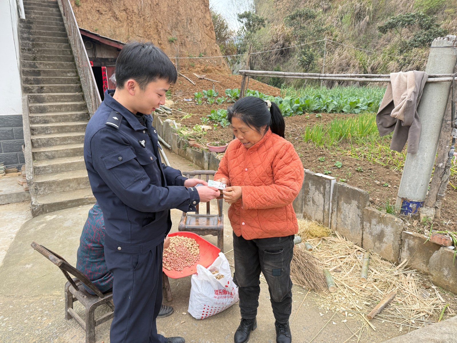 楼台乡地域广阔,山区村落分散,交通条件有限。不少老年人和行动不便的群众往返办事窗口取证需花费大量时间和精力。为此,派出所提前梳理身份证、户口簿等证件办理清单,建立台账,逐村逐户开展上门服务。民警携带已制作完成的证件,走进偏远村落,将证件送到群众手中。