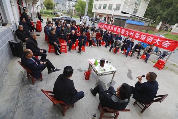 今日竹山网消息 4月4日,宝丰镇下坝村举行“感恩教育暨大叶茶培训大会”。与往常不同的是,这场会议将讲堂搬到了农家院坝,把“文件语”变成了“家常话”,为村民们送去了技术、法律和政策的“及时雨”。