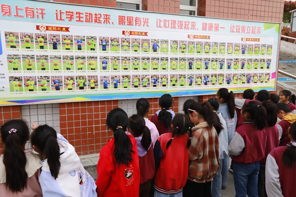 今日竹山网消息 4月7日,宝丰镇双坝小学的校园展板前围满了学生,大家正津津有味地观看新一期校园“运动之星”风采展示。
