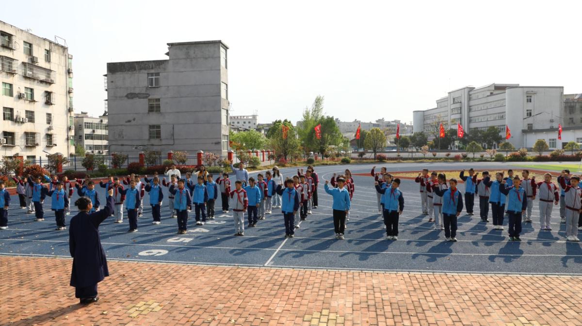 今日竹山网消息 4月8日,城关镇明清小学举行武当武术进校园开班仪式,全校500余名师生齐聚操场,共同开启武当武术学习之旅。