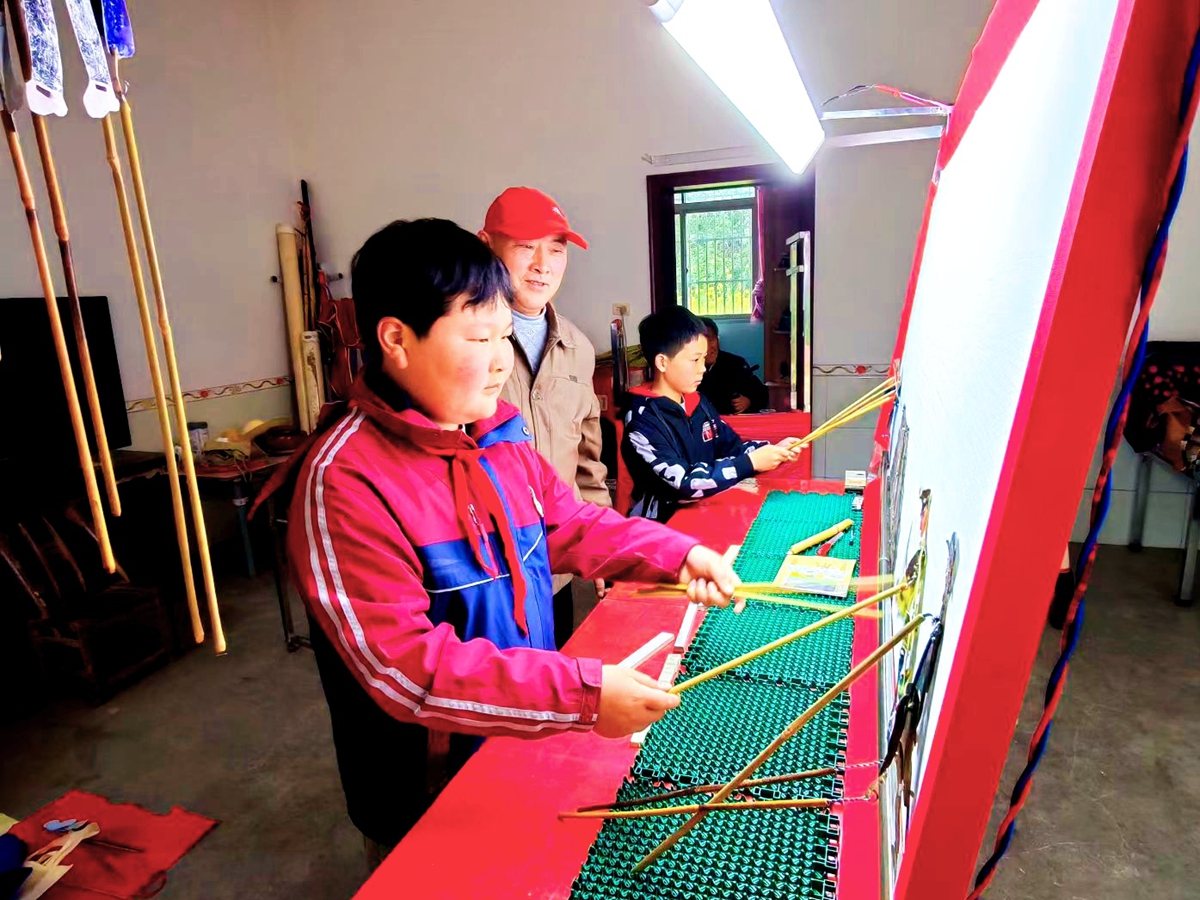 而在周崇浩、周浩然身侧,师傅陈中祥、周承志没有过多干预,全程以配角身份默默守护。看到徒弟手法稍有生疏时,他轻声点拨技巧;遇到唱腔节奏偏差,他们抬手轻轻示意;表演顺利推进时,他满眼欣慰地注视着徒弟,适时递上道具、配合简单的伴奏,把整个展示舞台全然交给徒弟,让徒弟在自主实践中打磨技艺、积累经验。没有严厉的说教,只有耐心的陪伴与恰到好处的指导,让整个课堂氛围既轻松又浓厚。