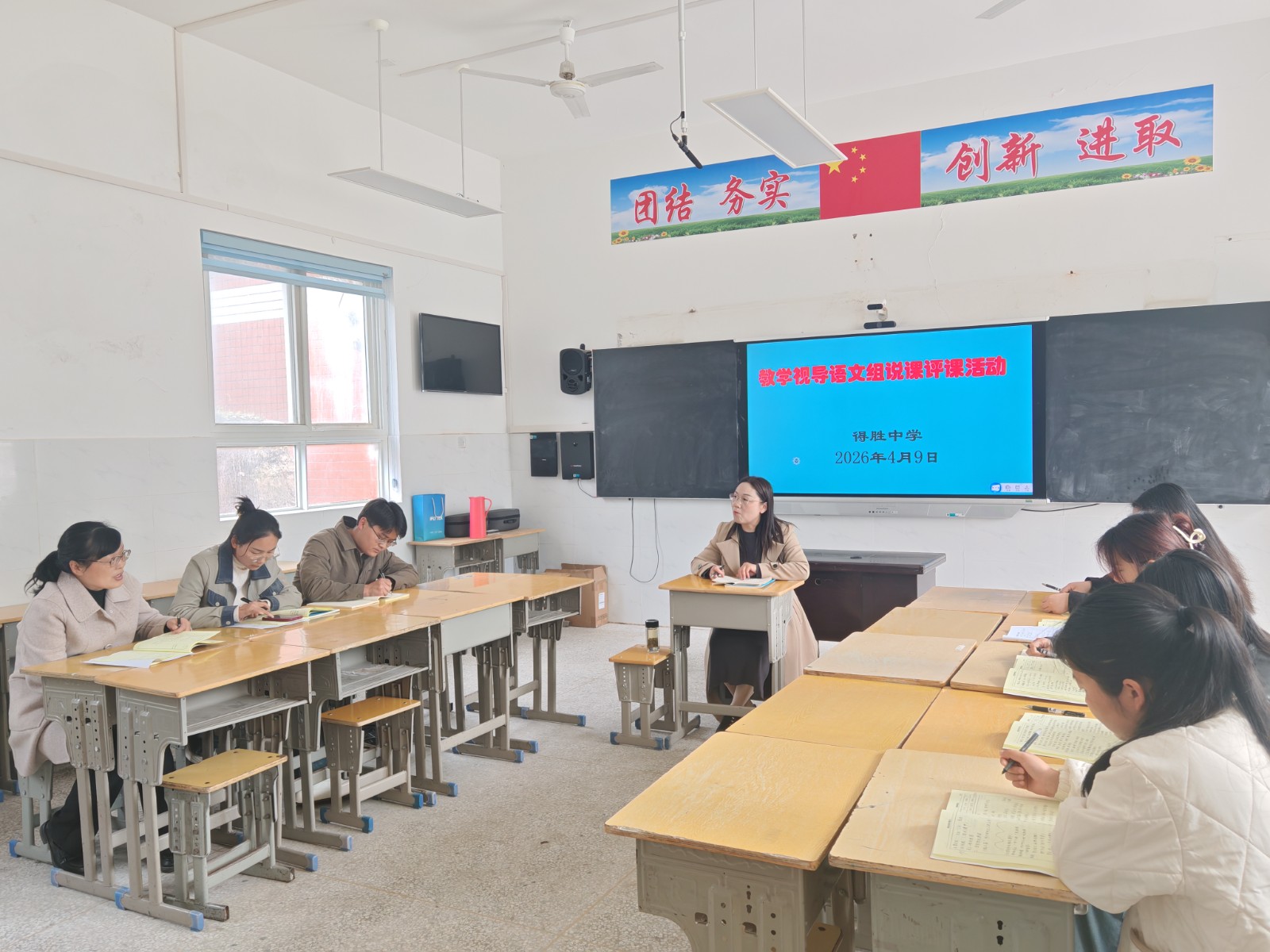 今日竹山网消息 为进一步落实新课标理念,深化课堂教学改革,促进教师专业成长,4月9日,县教研室中学组各学科教研员在汤主任的带领下,深入得胜中学开展教学视导活动。