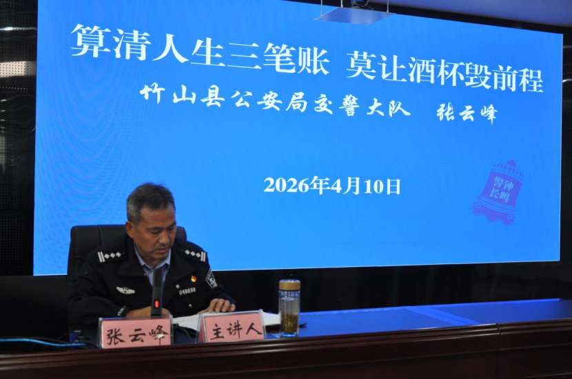 4月10日,竹山县教育系统2026年春季党员轮训课正式开课,竹山县公安局交管大队大队长张云峰以“算清人生三笔账 莫让酒杯毁前程”为主题。为全县教育系统教职工讲授“酒驾+反诈”双料警示课。课堂以视频连线方式开至各乡镇中心学校,教育局领导及中层干部200人在主会场参会,各乡镇教职工在分会场同步收听收看。