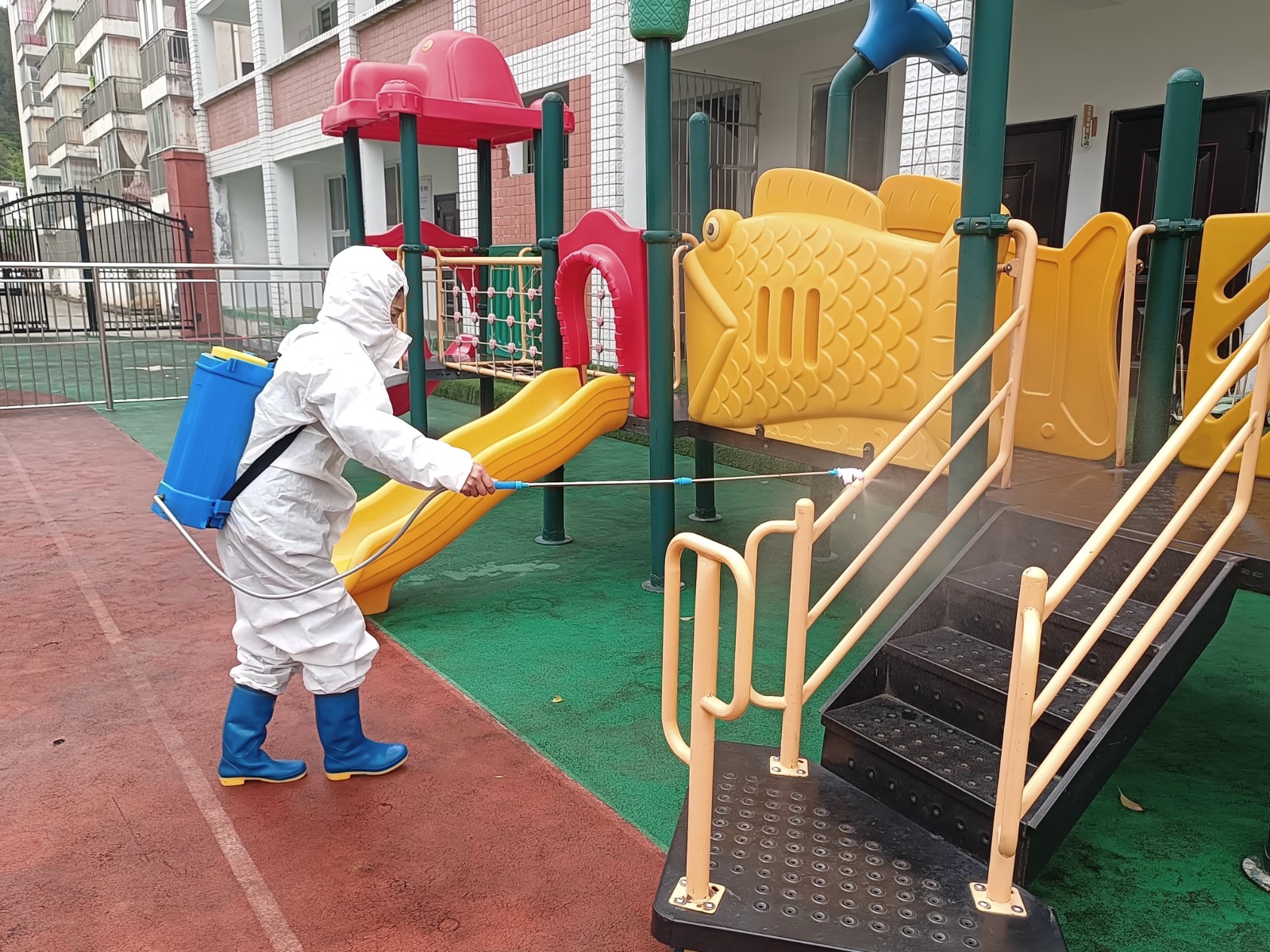 本次卫生消毒消杀工作覆盖了幼儿园全域区域,确保无死角、无盲区、全覆盖。工作人员严格按照卫生消杀标准规范操作,对园内户外活动场地、楼道走廊、班级教室、午睡寝室、卫生间、盥洗室等公共区域和幼儿高频接触区域进行彻底清扫、细致清洗、全方位消毒。同时,对幼儿桌椅、玩具、绘本、床铺、水杯、毛巾等生活用品和教学用具进行逐一清洁消杀,细致清理卫生死角,彻底清除细菌、病毒滋生隐患,从源头切断传染病传播途径。