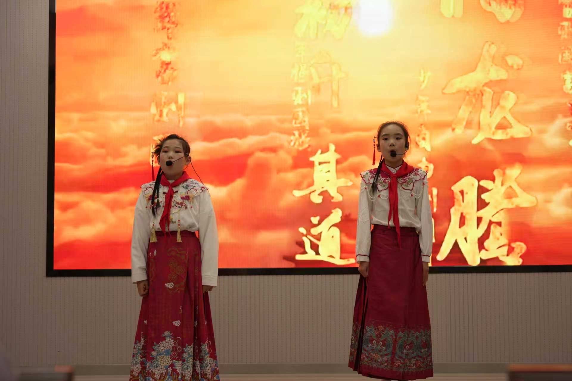 活动由三、四、五年级各班共18个节目参演。现场氛围热烈且庄重,各班参赛选手精神饱满、神采飞扬,以昂扬的姿态登上舞台。从流传千古的唐诗宋词,到意蕴深远的国学名篇,再到铿锵有力的红色经典篇目,同学们用清脆悦耳、饱含深情的诵读,演绎一篇篇经典佳作。《三字经》《弟子规》等启蒙经典,一字一句尽显童真童趣,在潜移默化中习得礼仪、传承美德;《少年中国说》《沁园春·雪》等篇目,抑扬顿挫的语调、慷慨激昂的情感,展现出新时代少年儿童朝气蓬勃、积极向上的精神风貌。活动还通过微信平台同步直播,让家长云端相聚,实时观看孩子们的诵读风采,共享这场书香盛宴。