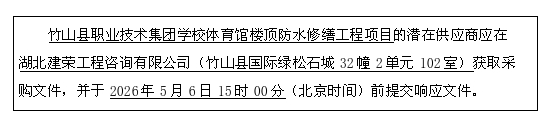3、项目名称:竹山县职业技术集团学校体育馆楼顶防水修缮工程项目