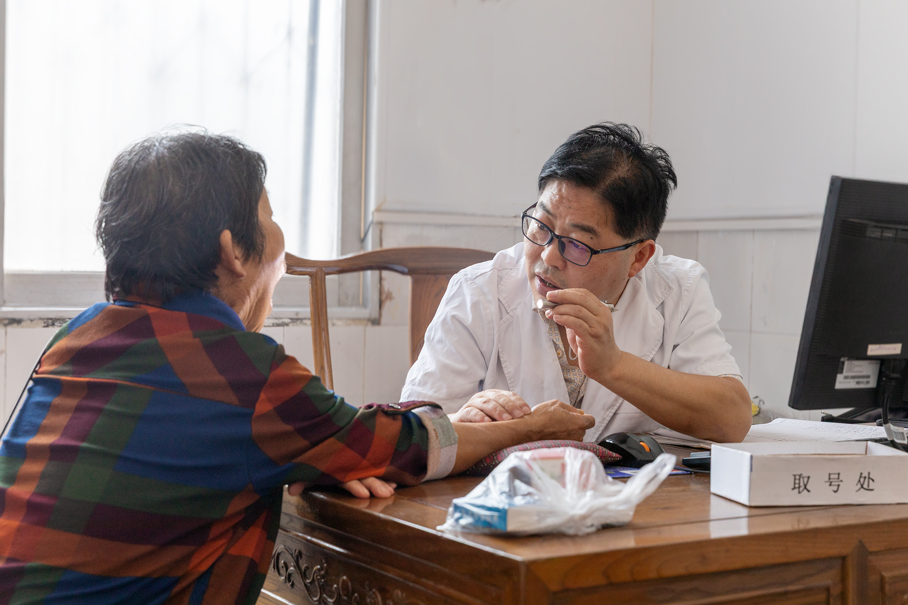 2017年,蔡美奎开始兼管中药房,这份职责让他对中医药材多了一份敬畏。“药材的地道性、配伍的合理性,直接关系到疗效,容不得半点马虎。”他常对中药房的工作人员说。为了保证药材质量,他亲自对每一味药材的产地、炮制方法都进行仔细核对;在配伍方面,他严格遵循“君臣佐使”的中医理论,精准把控每一味药的用量,力求让每一剂药都能发挥最大的疗效。他常说,中医的精髓,不仅在于医术,更在于对药材的敬畏、对患者的负责,每一剂药,都承载着患者的希望,不能有丝毫懈怠。