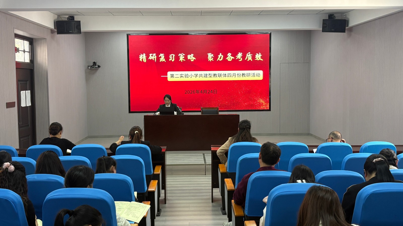 随后,专题讲座《减负不减质,上出有灵魂的复习课》立足“双减”政策背景,深入剖析当前毕业班复习教学中存在的误区与挑战,并提出“三精”复习策略:精准把握学情、精心设计教学、精细落实反馈。通过创设真实情境、设计开放性问题、融入跨学科元素等方式,让复习课既有知识的深度,又有情感的温度,真正实现提质增效。