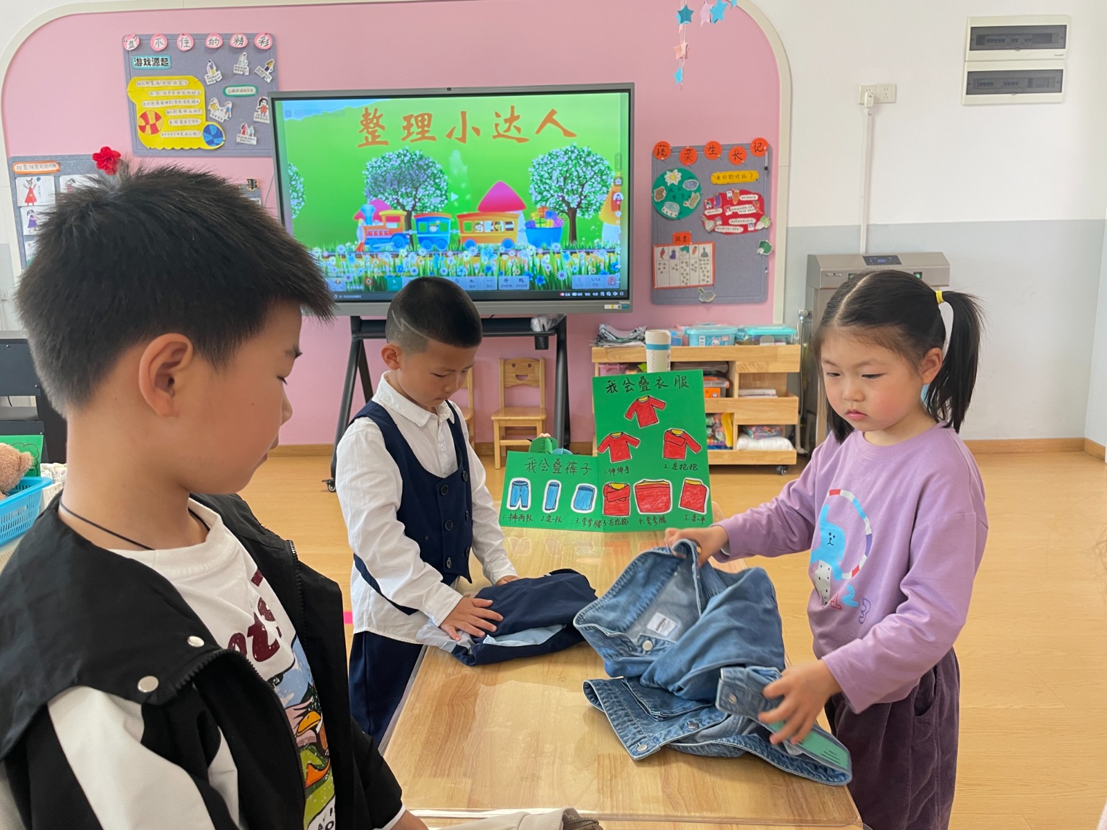 今日竹山网消息 近日,县实验幼儿园大班开展“整理衣物,收纳玩具”动手能力特色活动。