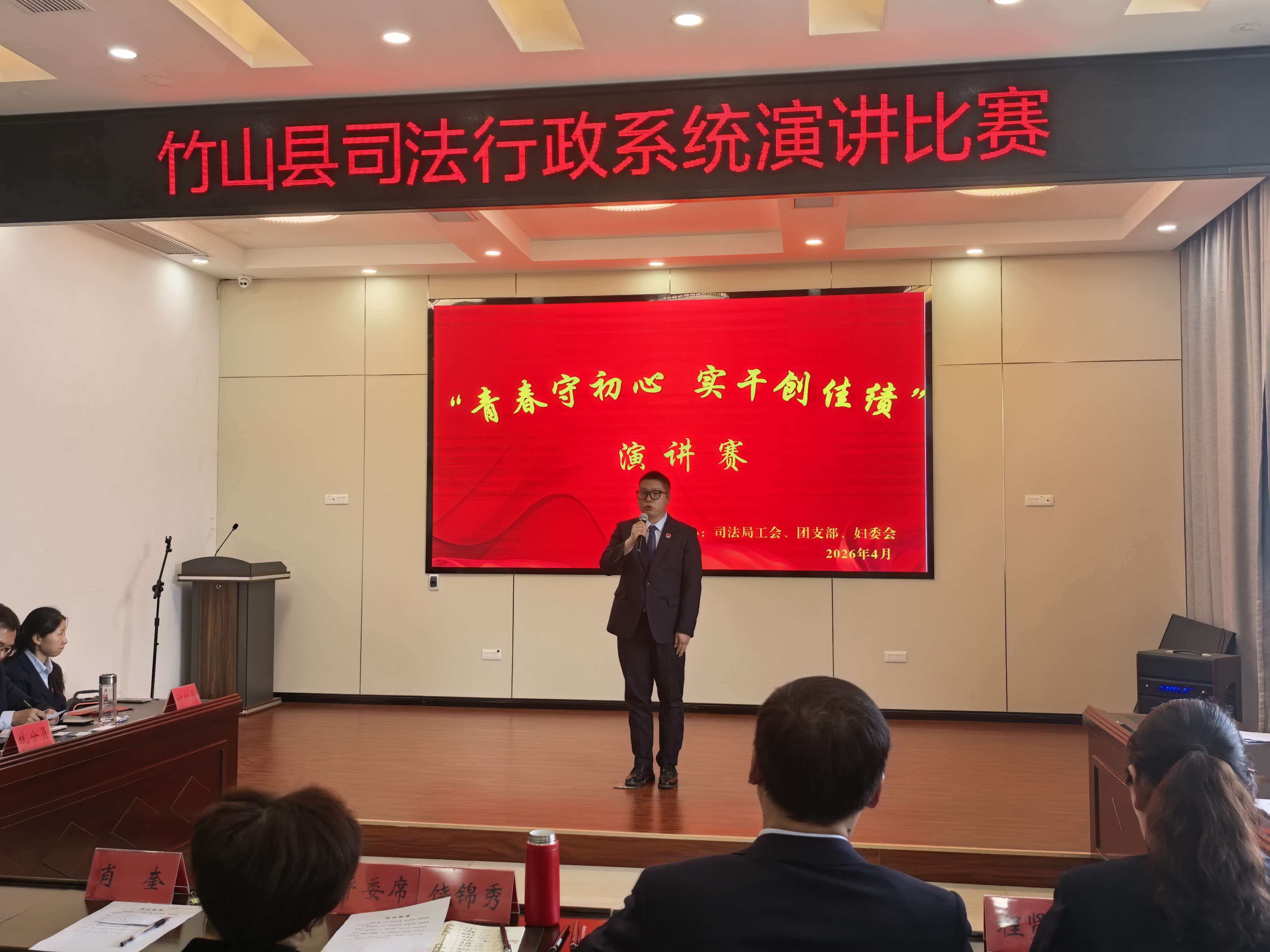 今日竹山网消息 4月24日,县司法局举办“青春守初心,实干创佳绩”主题演讲比赛,副县级干部、司法局局长饶锦秀出席活动。