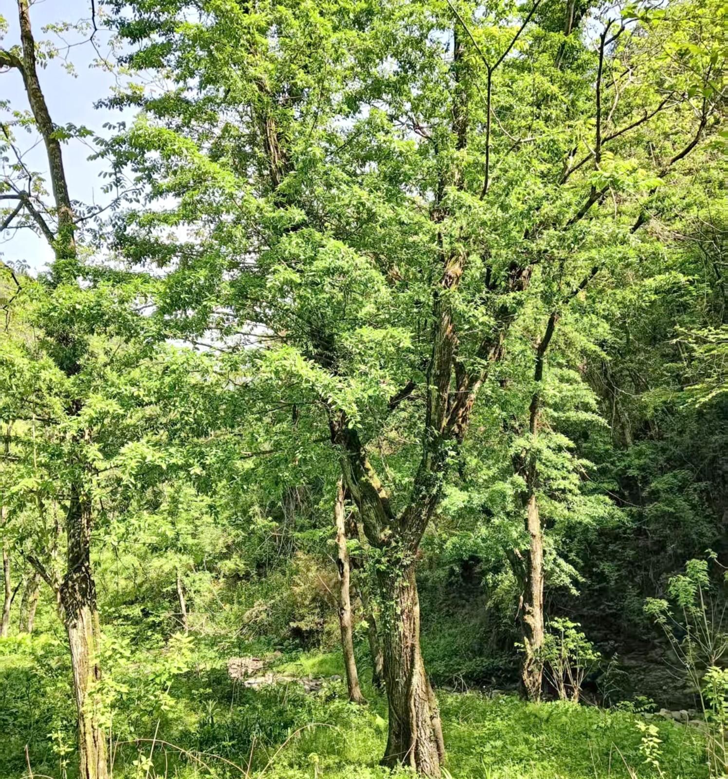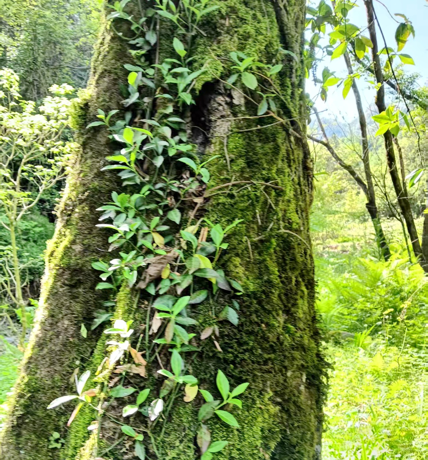 今日竹山网消息 近日,湖北堵河源国家级自然保护区工作人员在日常巡护中,撞见了一场奇妙“邂逅”——山核桃与常春藤协同生长、林下共存,勾勒出自然立体的生态画卷。要知道,这二者在植物学上分属不同科属、习性迥异,本无自然共生关系,如此场景实属难得。