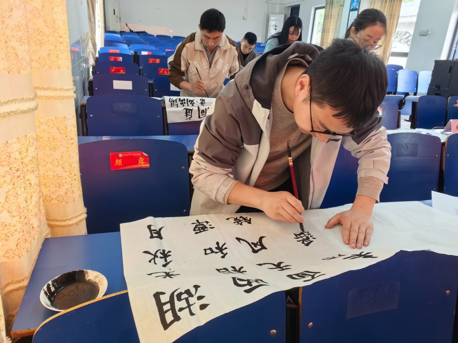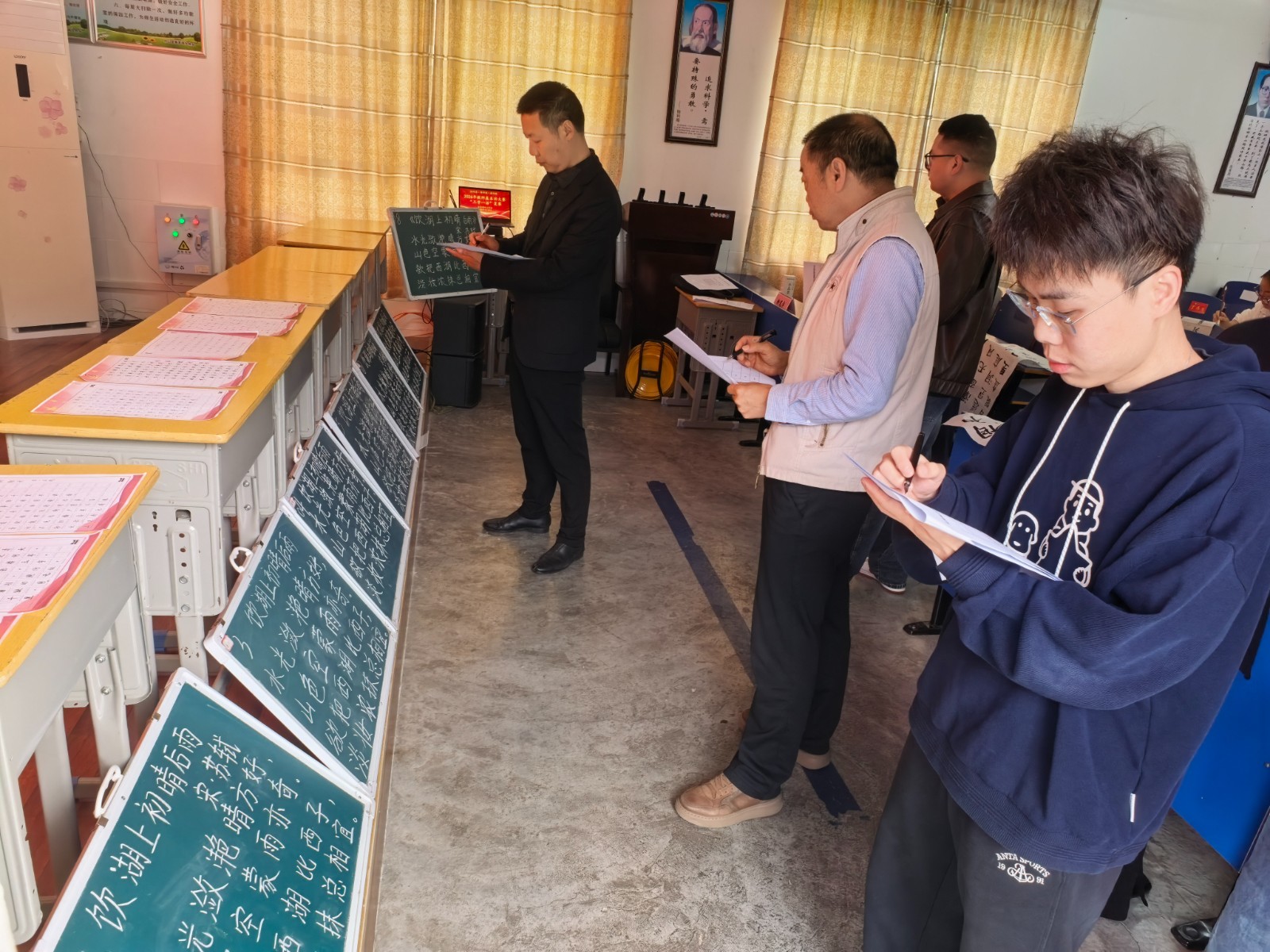 本次复赛,设置三笔字(钢笔字、粉笔字、毛笔字)、普通话(讲师德故事)、教育叙事三大项目,全面检验教师书写表达、语言素养与教育反思能力。三笔字赛场笔墨飘香、秩序井然。参赛教师现场挥毫泼墨,笔画规范、结构匀称、布局美观,一笔一画尽显汉字底蕴与专业素养。普通话赛场温情满满、声入人心。参赛教师围绕身边真人真事,讲述感人至深的师德故事,语言朴实真挚、表达流畅自然,搭配图文PPT生动呈现,传递教育温度与育人初心。教育叙事作品聚焦亲身教学经历,内容真实鲜活、叙述细腻深刻,兼具启发性与思考价值。