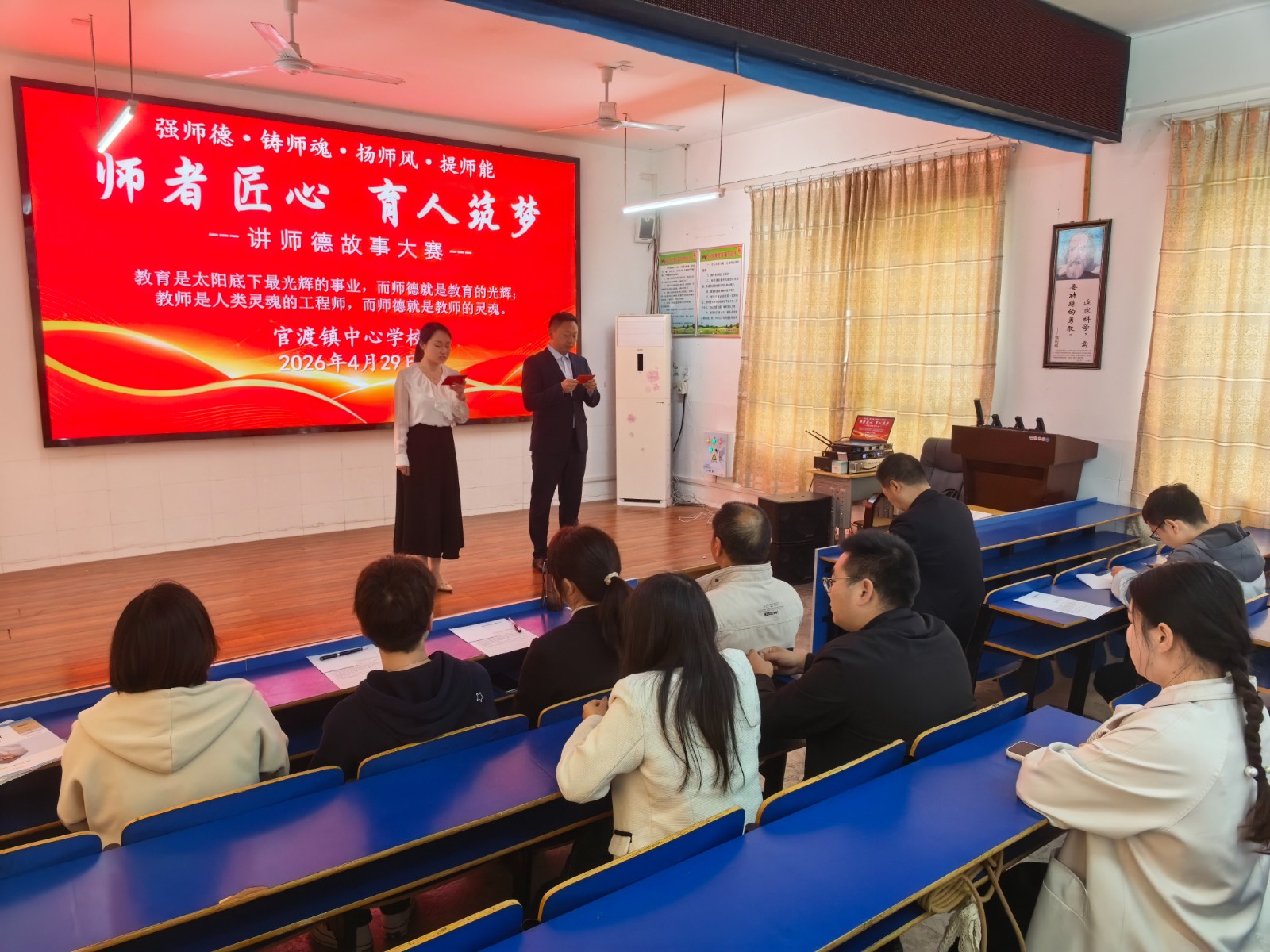 今日竹山网消息 4月29日,官渡镇中心学校2026年教师基本功复赛在官渡镇九年一贯制学校顺利举行。全镇各中小学、幼儿园经初赛选拔的优秀教师齐聚赛场,同台竞技、切磋技艺,充分展现新时代教师扎实的专业功底与昂扬的精神风貌。