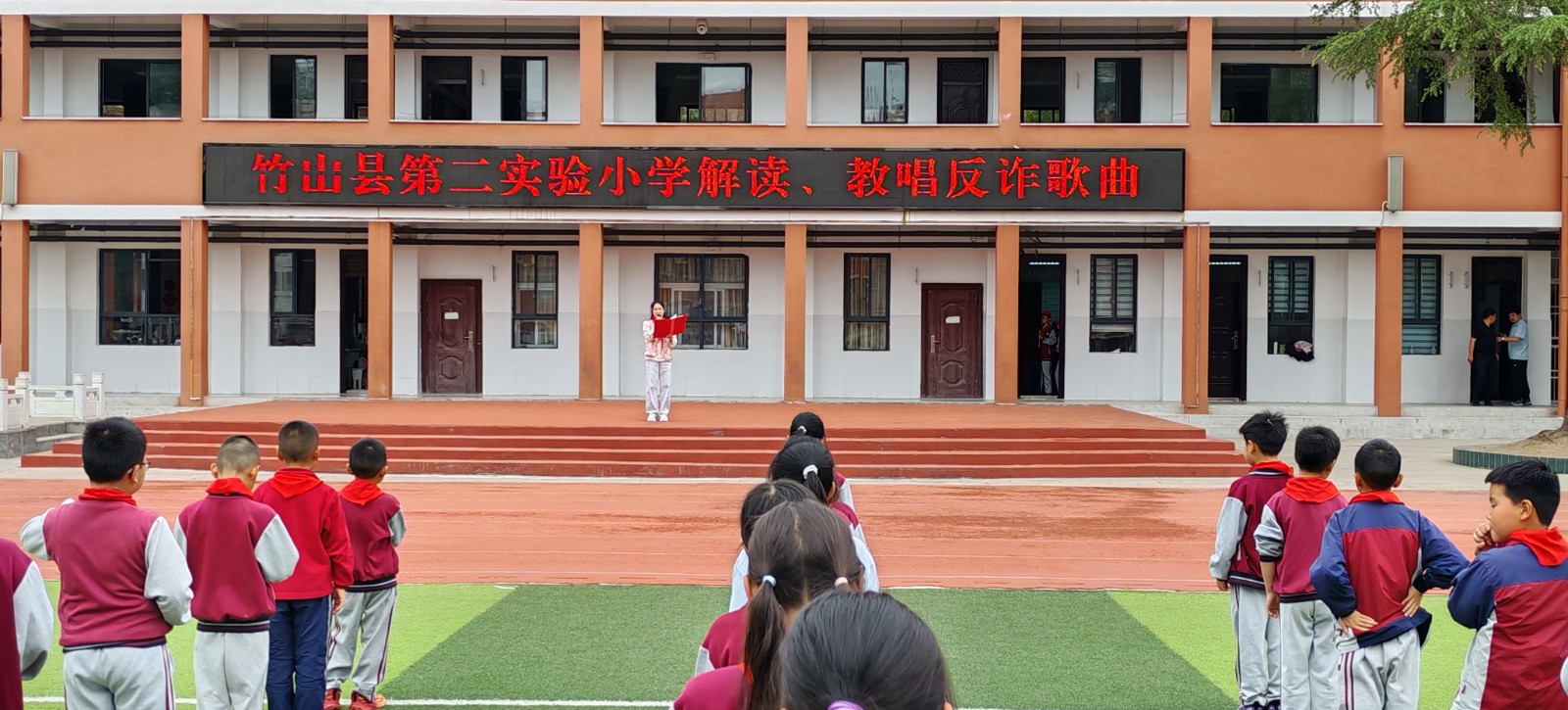 今日竹山网消息 4月27日,由十堰市反诈中心精心创作的《青春无诈》和《反诈小卫士》两首主题歌曲,在县第二实验小学的校园里准时响起,迅速掀起了一股全校学唱、传唱反诈歌曲的热潮。