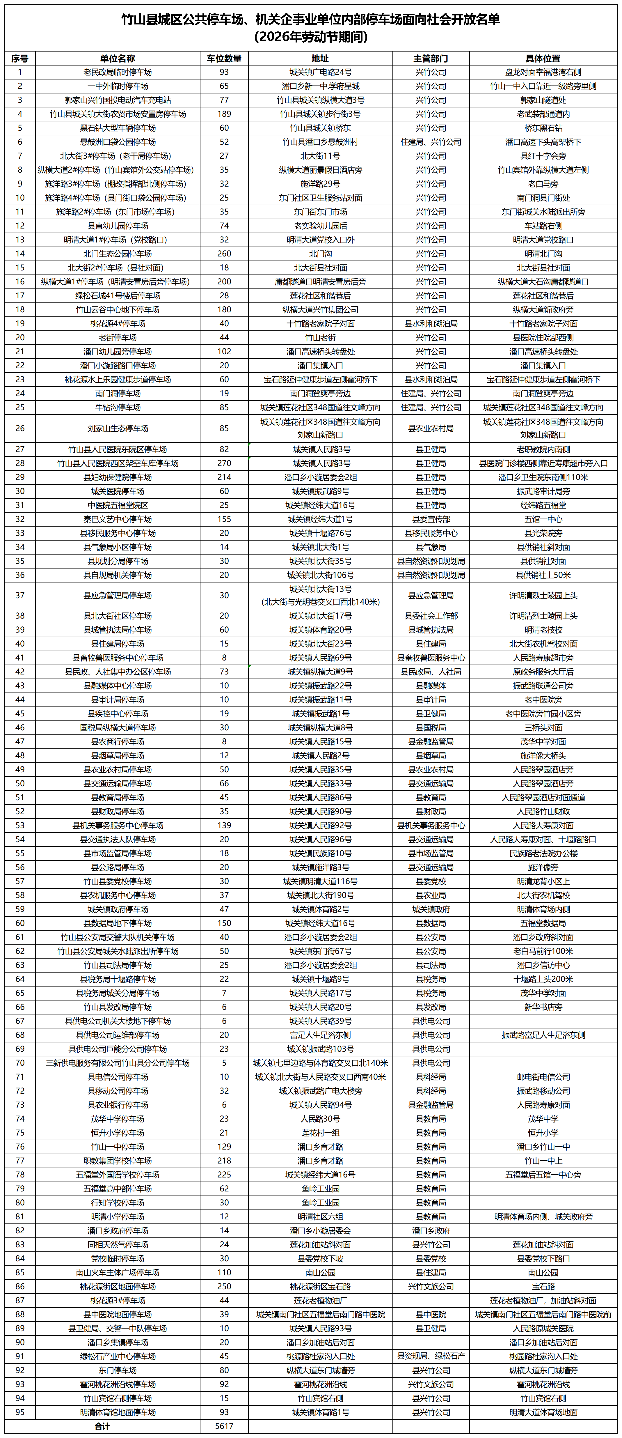 一、开放范围:县城区具备开放条件的95个公共停车场和机关企事业单位内部停车场(详情见附件)。