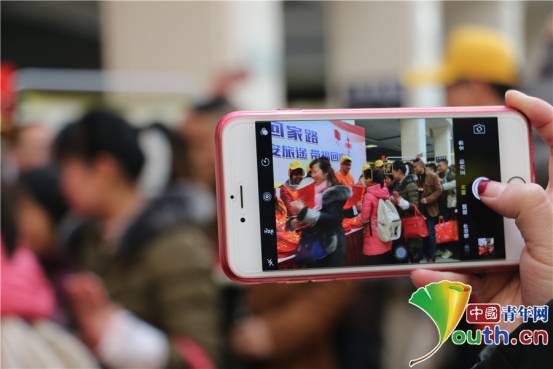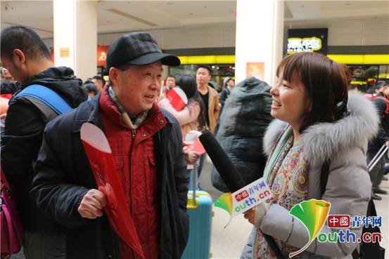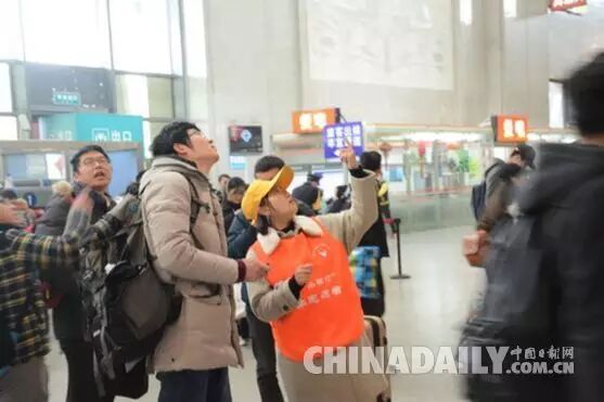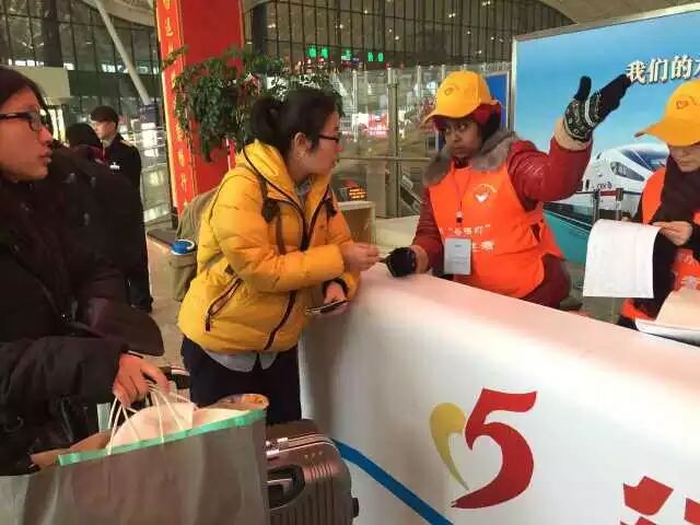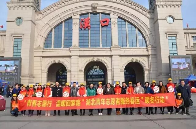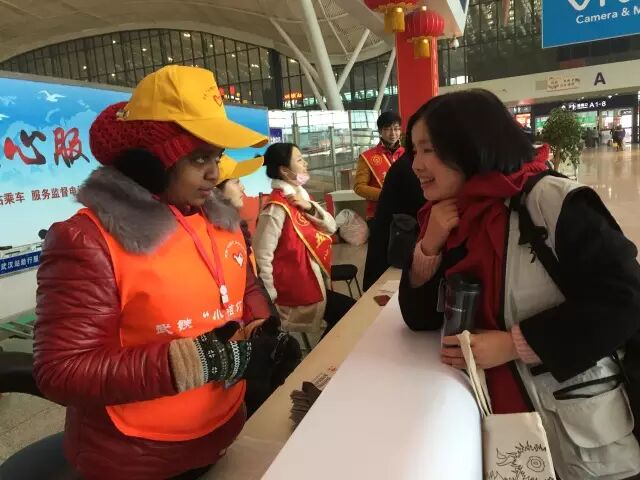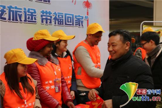 为了让旅客感受更温馨的春运出行氛围,武汉铁路局团委组织“洋”志愿者在火车站开展“平安旅途 带福回家”的公益祝福活动。