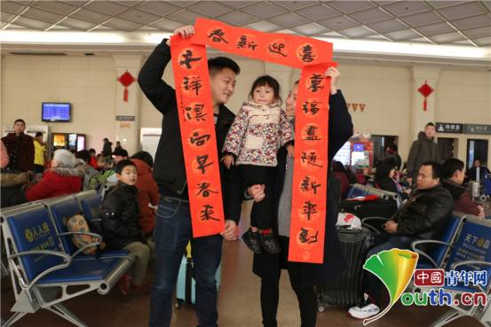 陈老师(旅客)拿着领到的春联说,“这些手写的春联,写得很好,感觉年味一下子浓了。这些志愿者们牺牲自己的时间来为大家服务,这种大爱行为真值得点赞”。