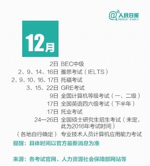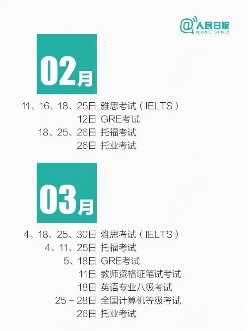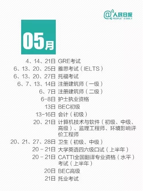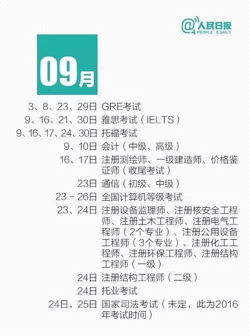 春节过了,新学期马上就要来了,现在还没订学习计划?看看考试日历吧!司法考试、教师资格证考试、计算机等级考试、四六级,还有每个月的托福、雅思、GRE……2017年考试日历↓↓考试虽不是全部,但却能督促“懒癌”患者!越努力,越幸运!